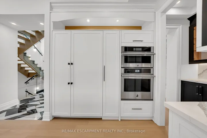 +"PublicRemarks": "An architectural masterpiece of unrivaled quality, this custom-built residence commands a premium 65-foot frontage lot, offering a 4+3 bedroom layout across over 5,900 square feet of refined living space. No expense has been spared in this designer-chic home, where guests are greeted by an open-concept foyer with soaring 20-foot ceilings and a bright skylight. The main floor offers a formal living and office space that flows seamlessly into a grand dining room, complete with custom built-ins and cove waffle ceilings with integrated LED inlays. This space transitions through a butler's pantry and servery into a custom chef's kitchen, which boasts bespoke millwork, under-cabinet lighting, and a grand waterfall island tailored for entertaining beside oversized windows overlooking the yard. The kitchen opens into a great room featuring 16-foot ceilings, a custom feature wall, and a gas fireplace, all complemented by intricate ceiling work and built-in cabinetry with LED accents. The second floor hosts four large bedrooms, each offering a private ensuite with custom imported finishes and bespoke built-in closets, alongside a discreetly tucked-away laundry room. The master suite features heated floors, dual vanities, and an abundance of natural light. The spacious lower level includes a great room with a linear fireplace, a walk-up entrance, and a home theatre with custom cabinetry and lighting, plus three additional spacious bedrooms. Located minutes from the QEW, 407, Appleby College, and Downtown Oakville, this home is truly not to be missed. Luxury Certified."