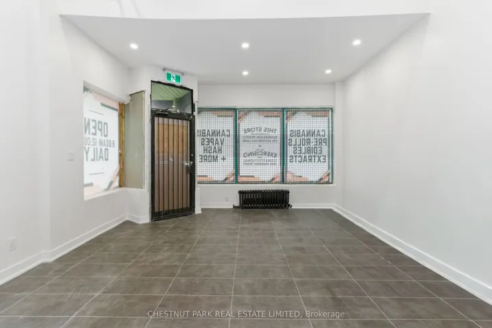 +"PublicRemarks": "Rare mixed-use opportunity on Roncesvalles Ave, with vacant possession! The main floor features a fully renovated 928 sq. ft. commercial space with 14 ft ceilings, exceptional natural light; and outstanding street exposure benefiting from strong daily vehicle, pedestrian and transit traffic. Over 200k in recent upgrades including new flooring, lighting, and a renovated washroom, creating a turnkey space, ideal for a variety of retail or service uses. The second floor offers a spacious 1427 sq ft two-storey residential unit with four bedrooms and two renovated bathrooms. Well-suited for end-users or investors, the upper unit provides flexibility for rental income or owner occupancy. Offered at an attractive 5.25% projected Cap Rate. A unique opportunity to secure a high-visibility commercial space with significant residential upside in a prime location."
