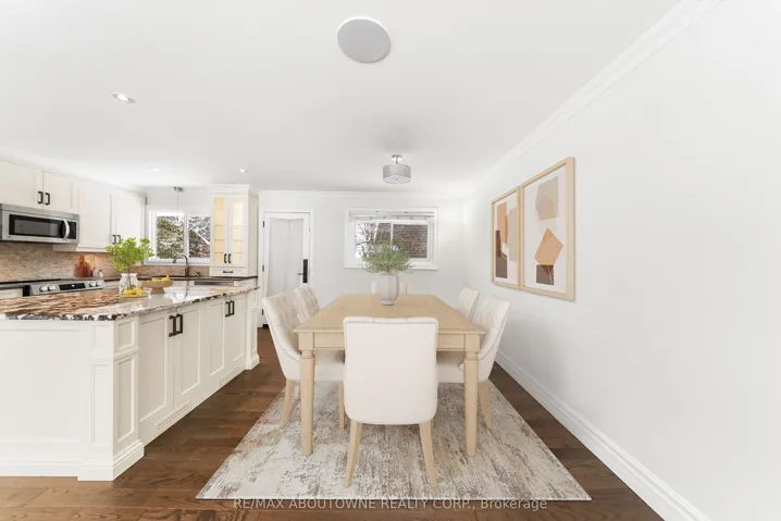 +"PublicRemarks": "Located on a quiet, tree-lined crescent in highly sought-after South East Oakville, this beautifully renovated 3+1 bedroom raised bungalow offers bright, open-concept living . The main floor features a spacious living and dining area, a gourmet kitchen with stainless steel appliances and a large centre island, hardwood floors, and oversized windows. Walk out to a private, fully fenced backyard with a deck and in ground pool. The main level offers three well-appointed bedrooms and a stylishly updated full bathroom. The finished lower level includes a large family/rec room with fireplace, an additional bedroom or home office, a renovated full bathroom, inside access from the garage, plus laundry and ample storage. Located in an excellent school catchment, with Maple Grove, E.J. James, and St. Vincent elementary schools and Oakville Trafalgar High School all nearby and within walking distance, plus close to parks, shopping, and transit. Some photos are virtually staged."
