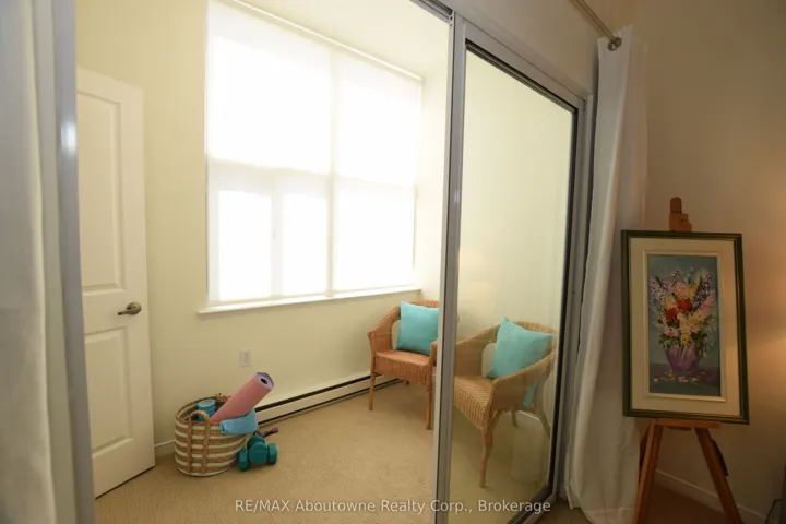 +"PublicRemarks": "Welcome to 2199 Sixth Line, The Oaks. Brightly refreshed 2 bedroom main floor condo apt. Newer engineered hardwood flooring throughout living room, dining room and kitchen. The two bedrooms are at opposite ends of the unit separated by principal rooms allowing for increased privacy and quiet. Perfect for a home office. Large primary bedroom has 4 pc ensuite, carpeting and a walk through to the bright and cheery sunroom, as well as a generous walk-in closet with organizer. This sunroom with large window would be a great sitting area to enjoy a coffee and your favourite book, do your morning stretches or use as a hobby room, the possibilities are endless. The second bedroom is generously sized and adjacent to the large 3 piece bathroom featuring walk-in shower. The living room features a bay window and is open to the generous dining area (or reverse your layout for a roomier living room and a bright dining area). In-suite stacked laundry. Galley kitchen with eat-in area has granite countertops, tiled backsplash and a hidden ironing board. If required, one inside parking spot is negotiable."