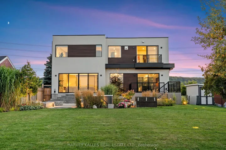 +"PublicRemarks": "Directly across from the cliff-face of the Niagara Escarpment, in one of Milton's most serene and private settings, sits a newly built contemporary masterpiece designed by award-winning Sensus Design Studio. Resting on a remarkable 60 x 520+ lot backing onto 16 Mile Creek, this home offers a rare blend of modern architecture and countryside tranquility. With no neighbours in front or behind, walls of windows immerse you in nature, while the expansive backyard invites year-round enjoyment whether relaxing in the hot tub, recovering in the cold plunge, gathering around the fire pit, fishing, tobogganing, or even practicing your short game of golf! Inside, 21 ceilings and a floating staircase set a dramatic tone. A formal living room frames escarpment sunsets, while the sleek custom kitchen features high-end Fisher & Paykel appliances. The family room, anchored by a soaring stone fireplace, doubles as a home theatre with built-in projector and surround sound. The primary suite rivals a five-star retreat: a sitting area that doubles as the perfect home office overlooking the backyard, a triple-sided fireplace, king-size sleeping area with custom headboard, walk-through closet, and spa-like ensuite. Three additional bedrooms each feature ample built-in closets and lavish ensuite bathrooms. Smart home features include lighting automation, landscape and irrigation systems, EV charger, and more. A perfect fusion of luxury design and natural beauty, this home is truly one-of-a-kind and must be experienced in person."