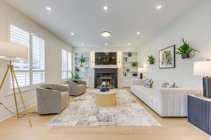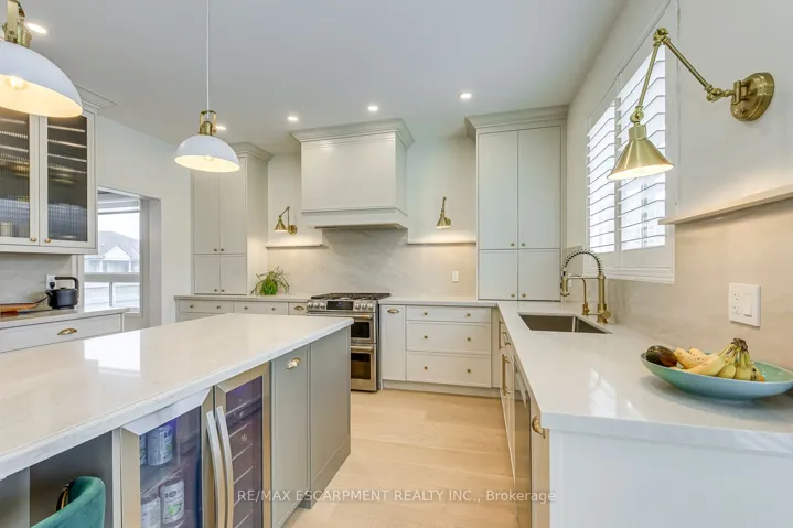 +"PublicRemarks": "Welcome to this spectacular home in the highly sought-after Millcroft community, where timeless design meets modern living. From the moment you arrive, the home makes a strong impression with its classic curb appeal and inviting presence.Step inside to a bright and elegant main level, where natural light pours through palladium windows, highlighting the thoughtfully designed layout. Formal living and dining rooms offer refined spaces for entertaining, while a private office provides an ideal work-from-home setup. The home has been extensively updated with wide plank engineered white oak flooring (2025), smooth ceilings, pot lights, and fresh Benjamin Moore paint throughout (2025).At the heart of the home is a stunning designer kitchen (2026), featuring Taj Mahal quartz countertops, full-height backsplash, premium brass fixtures, high-end appliances, a Bosch dishwasher (2025), Café gas range (2025), upgraded hood fan, and a built-in wine cooler. The oversized island, custom cabinetry, and designer lighting make this space both functional and visually striking. The kitchen opens seamlessly into the spacious family room with a cozy fireplace and custom built-ins.Sliding doors lead to a private backyard retreat with an in-ground saltwater pool, stamped concrete patio, and landscaped grounds-perfect for entertaining or relaxing.Upstairs, the primary suite offers a walk-in closet and a 5-piece ensuite. A second bedroom features its own ensuite, while two additional bedrooms and a full bathroom complete the upper level.Additional upgrades include Leviton switches and dimmers (2026), designer lighting and ceiling fans, and updated French doors (2023).Ideally located near top-rated schools, parks, golf, and amenities, this home offers luxury, comfort, and family-friendly living in one of Burlington's most desirable neighbourhoods."