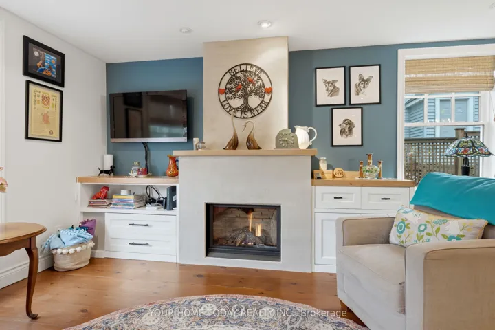 +"PublicRemarks": "Century Charm, Huge Lot and Amazing Location - a Win, Win, Win! Set well back from the road on a huge mature lot of almost 1/3 of an acre, this charming and beautifully updated home offers privacy, character and an unbeatable location just steps to the GO. A large double driveway with parking for up to 6 cars adds rare convenience for the area. Enjoy easy access to downtown shops, seasonal farmers market, restaurants, library, fairgrounds, parks, schools and more. Inside, timeless charm meets thoughtful updates. The sun-filled living and dining room showcases original pine plank flooring and a striking gas fireplace with stone façade and mantle, beautifully anchored by built-in cabinets. The well-equipped kitchen features white shaker-style cabinetry and an island with seating, making it both functional and inviting. The main level also offers a bedroom with a distressed wood barn door and garden door walkout to the incredible private backyard - a true outdoor retreat with flagstone patio, fabulous perennial gardens and plenty of space to relax, entertain or let kids and pets roam. A combined laundry and 3-piece bathroom complete the level. Upstairs, you'll find two character-filled bedrooms, a lovely 3-piece bathroom, and a unique family room with vaulted beamed ceiling, adding warmth and personality you just don't get in a cookie-cutter house. The unfinished basement provides additional storage and utility space."