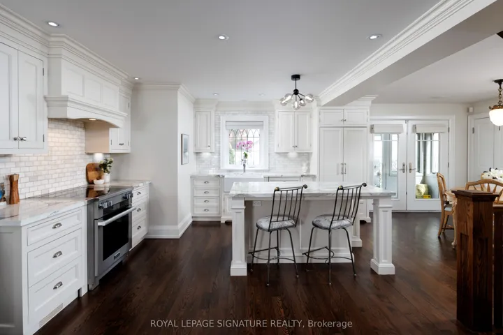 +"PublicRemarks": "The Hydrangea House in the Heart of the Kingsway. Timeless charm and modern comfort. Thoughtfully renovated, the home's warmth and character were meticulously preserved. The exterior features the original Tudor style stone facade, balanced with modern improvements creating a home of the finest caliber! Large chef's kitchen with marble counters and a walk out to the backyard. Vaulted great room with beamed ceiling and grand fire place with electric insert. Main floor office with original oak panelled walls. Rich wood trim and hardwood floors throughout, five pristine bathrooms. Primary bedroom with walk-in closet and ensuite which features soaker tub and walk-in shower. The finished basement extends your living space with a spacious recreation room, 400 bottle wine room, a private nanny suite with additional large bedroom and kitchen. Professionally landscaped outdoor green space with 75 hydrangeas bushes, and an irrigation system adorn this large corner lot. A private backyard oasis with a gas firepit. Large double driveway easily fits 4 vehicles plus 2 car garage with second story loft space for storage or playhouse for kids. Laneway suite potential. Perfectly located steps to Royal York subway station, and a short stroll to top-rated schools, shops, restaurants, cafes & everything this coveted neighborhood has to offer! This is a truly rare opportunity to acquire a magazine quality dream home of this charm and prominence!"