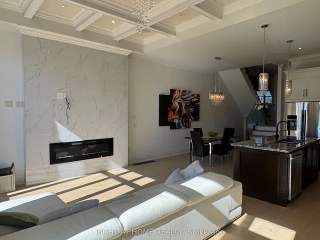 +"PublicRemarks": "A rare offering on a quiet, family-friendly dead-end street (ideal for families seeking low traffic and a safe, peaceful home), this custom-built residence sits on a deep lot and showcases refined design, elevated finishes, and a fully renovated interior (Apr/2026).From the moment you enter, you're greeted by soaring ceilings, rich natural light, and a seamless blend of modern sophistication and timeless craftsmanship. Freshly painted in the 2026 Pantone Colour of the Year ("Cloud Dancer"), the home features newly refinished genuine hardwood flooring and sleek glass railings that enhance its clean architectural lines. The open-concept main level is anchored by a dramatic family room with 11.5-ft coffered ceilings, a new bespoke fireplace feature wall, and integrated ceiling speakers- ideal for intimate evenings and upscale entertaining. Western exposure bathes the space in golden afternoon light, culminating in stunning sunset views. The chef's kitchen is equally impressive - 10-ft ceilings, large island, with high-end finishes designed for function and style. Upstairs, a statement staircase wall featuring custom wainscoting leads to a serene private retreat. Three (!) skylights further elevate the ambiance, filling the upper level with natural light. The primary suite exudes comfort and sophistication with 9-ft beveled ceilings, a spacious walk-in closet, and a spa-inspired ensuite featuring a double vanity, deep soaker tub, and a glass shower. Fully finished lower level, complete with a separate entrance, is thoughtfully appointed with SS appliances and a granite counter-ideal for a private guest suite, executive home office, or income-generating opportunity. Outdoors, the expansive (135ft lot) backyard offers privacy & scale-perfect for entertaining, relaxation, or family living. Perfectly positioned steps from boutique shops, dining, transit, parks, and major commuter routes, this home delivers a seamless balance of luxury, lifestyle, and convenience."