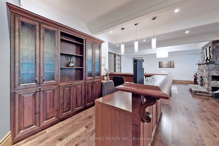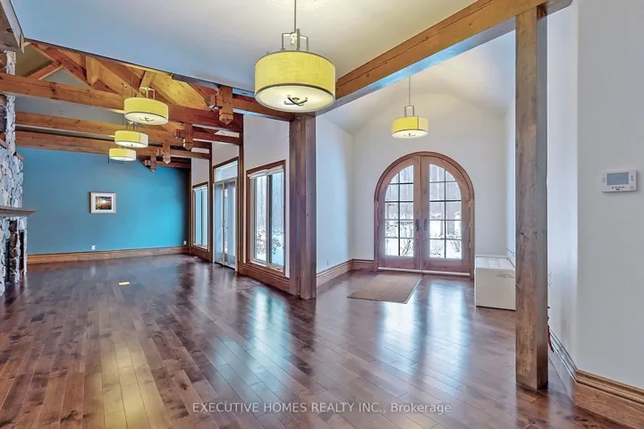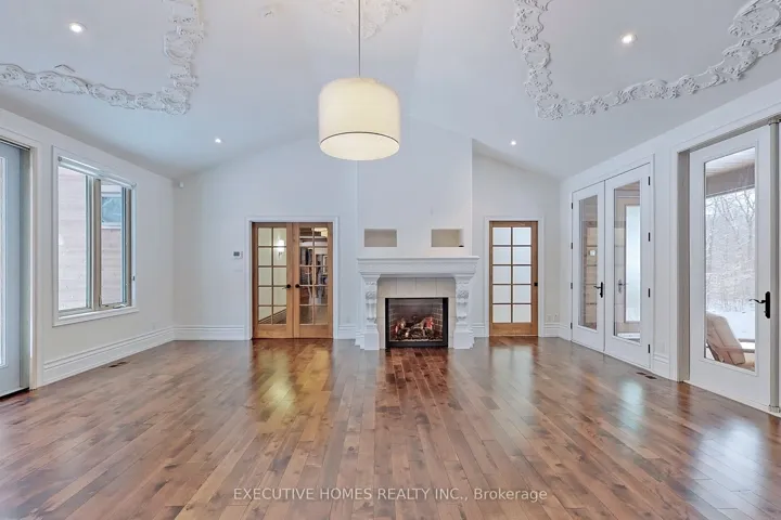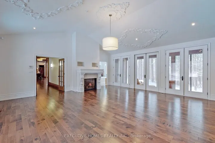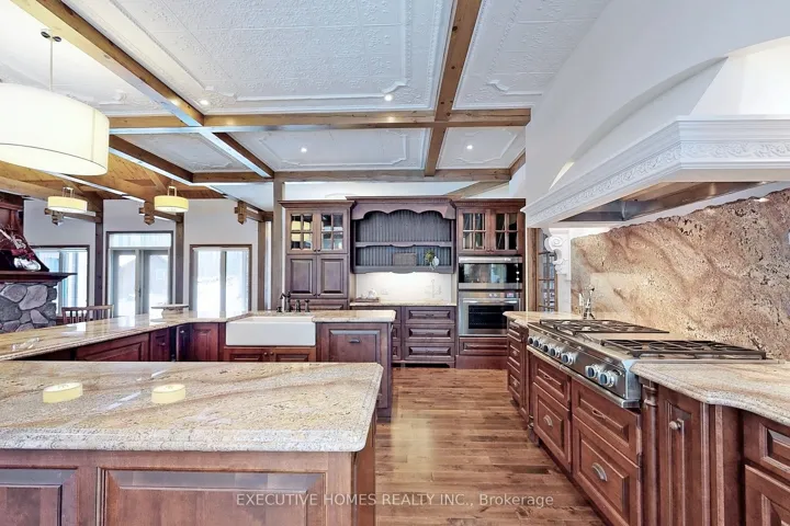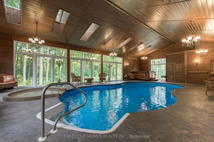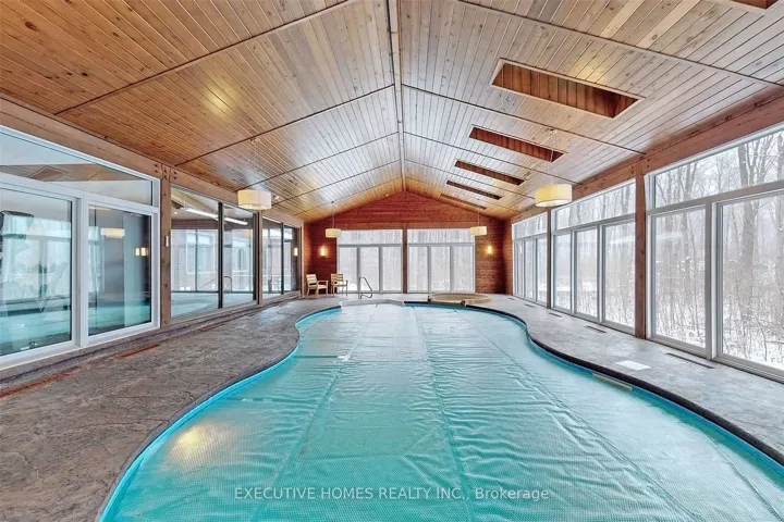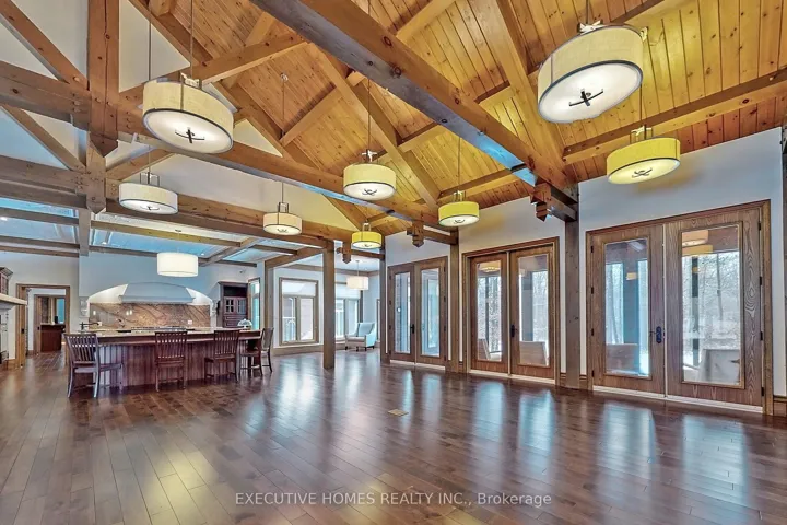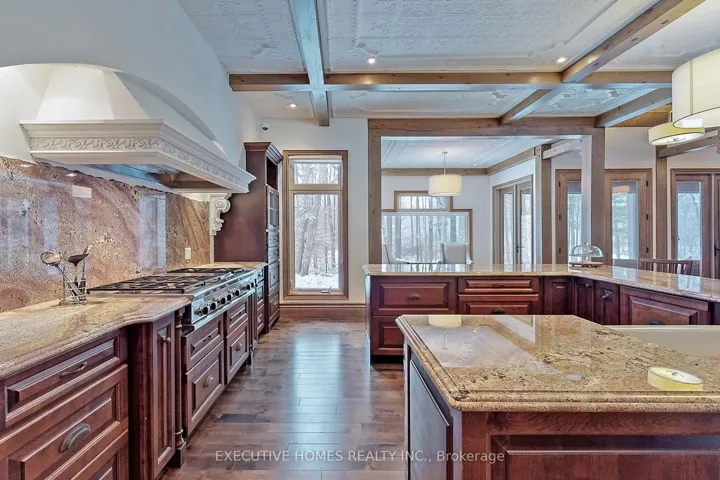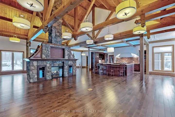 +"PublicRemarks": "Welcome to 7651 Milburough Line, an exceptional private estate set on 42 acres of picturesque countryside in Milton, complete with a spring-fed pond and 30 acres of mature sugar maple forest. A long, tree-lined private drive leads to this remarkable custom-built residence offering approximately 19,470 sq ft of total living space (15,696 sq ft finished). Designed for grand living and entertaining, the home features 11 bedrooms and 11 bathrooms, ideal for multi-generational families or luxury retreats. Inside, timeless elegance is expressed through soaring 22-ft vaulted ceilings, coffered details, handcrafted plaster mouldings, and rich solid wood finishes throughout. Two gourmet kitchens, outfitted with professional-grade appliances, provide exceptional versatility for hosting on any scale. The main floor primary suite is a true sanctuary, highlighted by a spa-inspired ensuite with chromatherapy tub, heated backrests, warming drawer, and heated towel rack. Multiple principal rooms are anchored by five gas fireplaces and a striking wood-burning fireplace, offering warmth and sophistication. Resort-style amenities elevate the experience, including a stunning indoor heated pool with hot tub and children's wading area, along with a dedicated wellness wing featuring a home gym and spa with dual saunas. The finished lower level with walkouts adds flexible space for recreation or extended family living.Outdoors, enjoy multiple patios, screened porches, and a Muskoka-style room with a double-sided fireplace, all surrounded by serene natural beauty. Built with exceptional quality, the home includes geothermal heating, in-floor radiant systems, 400-amp service, metal roofing, and advanced water purification. Renovated in 2015, this rare offering blends luxury, privacy, and convenience just minutes from major routes."
