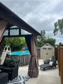 +"Inclusions": "All Stainless Steel appliances in Kitchen, all ELF, all window coverings, Hot water tank OWNED, Whirlpool Fridge in Garage, Security pad in Living room. Door bell with camara, Gazebo and shed."