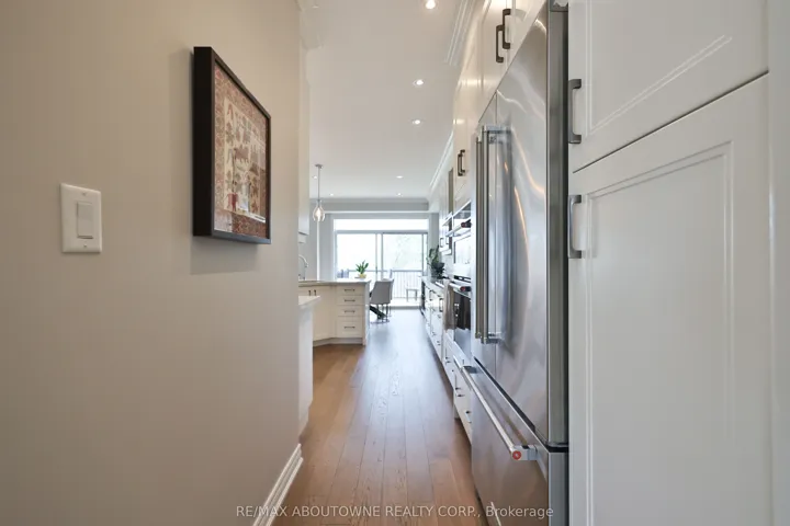 +"PublicRemarks": "Tucked within the exclusive Ballantry-built enclave of Winding Creek Cove, this upgraded executive townhome offers approx. 2,810 sq ft of refined, low-maintenance living with exceptional privacy. Backing onto greenspace and a tranquil pond with no rear neighbours, and surrounded by the scenic 16 Mile Creek trail system, it provides a rare and peaceful setting.Ideally located minutes to Oakville Trafalgar Memorial Hospital, major highways (QEW, 403, 407, William Halton Parkway), GO Transit, Glen Abbey and Oakville Golf Club, and the new Neyagawa Community Centre-this home blends convenience with exclusivity.This well-managed, upscale condo townhouse community is known for its quality construction and proactive upkeep, appealing to professionals, couples, and downsizers alike. Recent updates include a new deck with aluminum railing, and a planned community-wide internet/TV package with estimated savings of $100-$150/month.With over $200,000 in upgrades, including appliances and HVAC, the home features a bright living room with hardwood flooring, crown moulding, and a custom feature wall with a Valor gas fireplace and quartz surround. The modern kitchen offers stainless steel Kitchen Aid appliances, quartz counters, and a peninsula with seating, flowing into a breakfast area with walkout to the new deck. A formal dining room with coffered ceiling, transom windows, and designer lighting completes the main level.Upstairs, the spacious primary suite includes two walk-in closets, built-ins, and pond views, along with a luxe ensuite featuring a quartz vanity, soaker tub, and separate shower. Two additional bedrooms, a full bath, and laundry complete this level.The above-grade lower level features a bright rec room with walkout to a private patio, garage access, and a 2-piece bath. Double driveway and garage parking for up to six vehicles. Privacy fences replaced this spring. A truly exceptional opportunity."