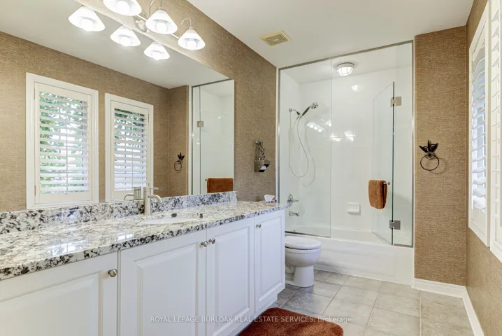 +"PublicRemarks": "A home built to last, set on a large lot in prestigious Millcroft. This impressive two-storey residence offers over 5,300 sq. ft. of living space, including a fully finished basement, and backs onto the scenic Millcroft Golf Course for ultimate privacy. Designed for those who appreciate a classic layout, the main floor features a formal living room and a private home office off the spacious foyer. The heart of the home spans the rear, where the kitchen, dining, and family room create a seamless space ideal for both entertaining and everyday living. The gourmet eat-in kitchen showcases solid cabinetry with detailed millwork, stone countertops, and stainless steel appliances. A custom laundry room with access to the tandem garage, along with a powder room, completes the main level. Upstairs, you'll find four generously sized bedrooms, two with ensuite access. The west-facing primary suite is filled with natural light and includes a luxurious 5-piece ensuite with double vanity, soaker tub, walk-in shower, water closet, and dedicated makeup area. A large walk-in closet and cozy gas fireplace add both function and comfort. The finished lower level adds over 1,700 sq. ft., featuring a spacious recreation area, 3-piece bath with sauna, a den with potential for a fifth bedroom, and walk-up access to the garage. Step outside to a private backyard retreat with an interlock patio, multiple seating areas, and a custom water garden with a two-tier waterfall overlooking the ravine. Additional highlights include heated floors in all upstairs bathrooms, a tandem garage with parking for four cars, and a four-car driveway. Built by Monarch, this home offers exceptional quality and craftsmanship on a quiet corner lot."