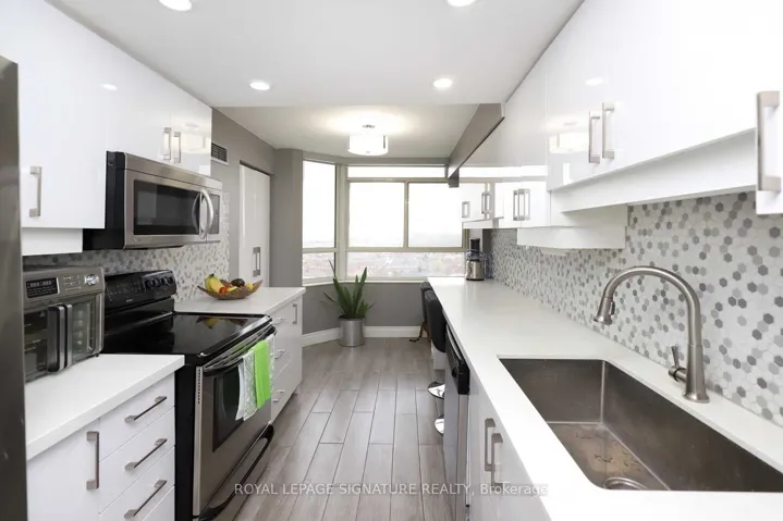 +"PublicRemarks": "Welcome To This Beautifully Renovated, Move-In-Ready, South-Facing Suite Offering Exceptional Space, Refined Finishes, & Breathtaking City Views Stretching All The Way To The CN Tower. Bathed In Natural Sunlight Throughout The Day, This Home Delivers A Bright, Airy Atmosphere That Elevates Everyday Living. The Expansive Sun-Filled Solarium Provides Outstanding Versatility & Can Easily Function As A Third Bedroom, Home Office, Playroom, Or Serene Retreat-Ideal For Families & Professionals Alike. The Home Features A Fully Renovated Kitchen & Two Stylishly Updated Bathrooms. Complemented By Luxury Laminate Flooring Throughout, Smooth Ceilings, & No Carpet, Creating A Sleek, Contemporary, Low-Maintenance Environment. The Primary Bedroom Is Enhanced With Modern Pot Lights, Dimmers In Both The Primary Bedroom And Dining Room Allows You To Set The Perfect Ambiance For Any Occasion. Enjoy Peace Of Mind With Smart Home Technology. Complete With A Smart Lock & Smart Peep-Hole Camera, Giving You The Ability To Secure & Monitor Your Home From Anywhere In The World. Effortless Convenience & Peace Of Mind. This Spacious Unit Includes Two Parking Spaces & A Storage Locker. The All-Inclusive Maintenance Fee Covers All Utilities, High-Speed Internet, And A VIP Cable Package, Offering Exceptional Value And Convenience. The Impeccably Maintained Building Features 24-Hour Security & Resort-Style Amenities Including A Fully Equipped Gym, Outdoor Swimming Pool, Billiards Room, Squash And Tennis Courts, Two Saunas, Party Room, Library, & A Car Wash Station. Ideally Located Near Schools, Parks, Shopping, Public Transit, & Seamless Access To Highways 407, 410, & 401. This Home Delivers A Rare Blend Of Luxury, Functionality, & Lifestyle. It Checks Every Box."