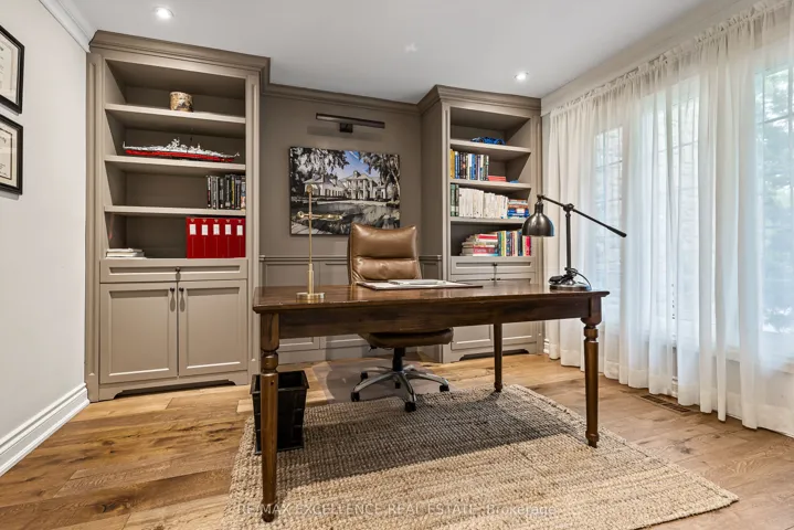 +"PublicRemarks": "Welcome to an extraordinary custom estate in the prestigious Sherwood Forest community, one of Mississauga's most coveted enclaves of distinguished executive residences and mature tree-lined streets. Set on a rare 75 x 150 ft park-backing lot, this exceptional property offers a level of privacy, tranquility, and sophistication seldom found Encompassing 3,733 sq ft above grade, the residence has been meticulously reimagined with timeless design, refined craftsmanship, and curated finishes throughout. Grand principal rooms are complemented by exquisite custom millwork, bespoke built-ins, and seamless transitions designed for both elegant entertaining and everyday family living. At the heart of the home, a beautifully appointed designer kitchen anchors the main level, flowing effortlessly to the surrounding living spaces and private outdoor retreat. A dedicated home office provides flexibility for today's executive lifestyle.The upper-level features five generously proportioned bedrooms and beautifully finished baths, including a sumptuous primary suite with a private balcony and spa-inspired ensuite designed as a true sanctuary.The fully finished lower level offers an exceptional extension of the living space, complete with a private theatre, wet bar, recreation lounge,fitness area, and steam shower creating an unrivaled setting for leisure and entertaining Outdoors, the grounds evoke a private resort experience with a heated saltwater pool, hot tub, and professionally landscaped gardens backing onto serene green space for complete serenity and seclusion.Further enhancing the home are CAT5/RJ45 smart wiring, integrated security cameras, irrigation system, and thoughtful mechanical upgrades that blend modern convenience with enduring quality Ideally situated moments from premier schools, fine dining, luxury shopping, and major highways, this is a rare and compelling offering in one of Mississauga's most distinguished neighbourhoods. Immediate possession available."