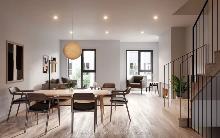 +"PublicRemarks": "Welcome to this practically new and move-in ready stylish end-townhome, built in 2023 and ideally located in a highly desirable neighbourhood backing onto a serene wooded sanctuary. Offering a premium location, this bright and spacious home is filled with natural light from its large windows on two sides of the home.The main floor offers functional design with inside access from the 19 foot garage, a versatile den with the potential to be converted into a bedroom, laundry room with ample storage space and A rare basement level offering 320 sq. ft. of versatile space, perfect for storage or a bright family room with two windows. The second level features a modern open-concept layout with wide plank hardwood flooring, smooth ceilings, and pot lights throughout the kitchen and living areas. The quality upgraded kitchen includes quartz countertops, modern colour cabinetry, soft-close drawers and cabinets, and a stylish backsplash, flowing seamlessly into a cozy dining area and bright living space. Step out onto the large private balcony and enjoy peaceful views of the surrounding greenery perfect for those bird watchers. Upstairs offers well-appointed bedrooms, including a spacious primary suite with a 3-piece ensuite featuring quartz countertops, high cabinetry, and a wall-in glass shower. A full 4-piece main bathroom and an additional 2-piece powder room add convenience. Custom Silhouette blinds and upgraded doors and hardware are found throughout.With quality finishes, a functional layout, a rare basement, and a premium corner location backing onto green space, cozy front porch facing the natural preserve, this home is an exceptional opportunity. This over 2000 square foot home is Perfect for First-Time Buyers and Downsizes."