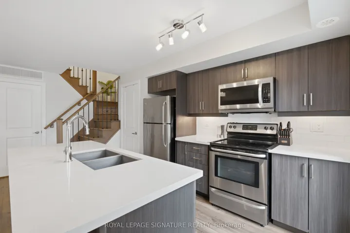 +"PublicRemarks": "Attention First-Time Home Buyers, Young Professionals & Young Families! This beautifully upgraded two bedroom condo townhome showcases a stylish multilevel open-concept design, blending modern finishes with functional living. The spacious living and dining area flows effortlessly into a contemporary kitchen featuring stainless steel appliances, sleek countertop, upgraded cabinetry, and a walk-out to a private balcony perfect for relaxing or entertaining. Stained staircase with black iron spindles add a refined architectural touch throughout the home. The primary bedroom is enhanced by a charming Juliet balcony with southern views, creating a bright and airy retreat. Ideally situated steps from TTC transit and just minutes to Highways 401 and 400, this home offers exceptional convenience near York University, shopping, dining, excellent schools, and every major amenity."