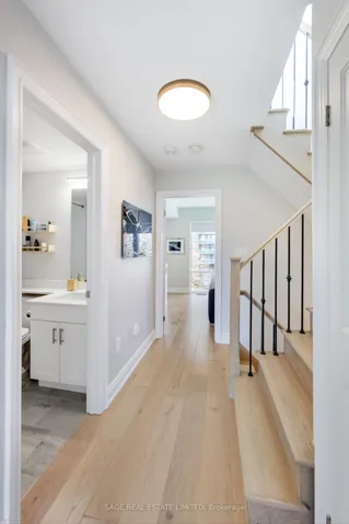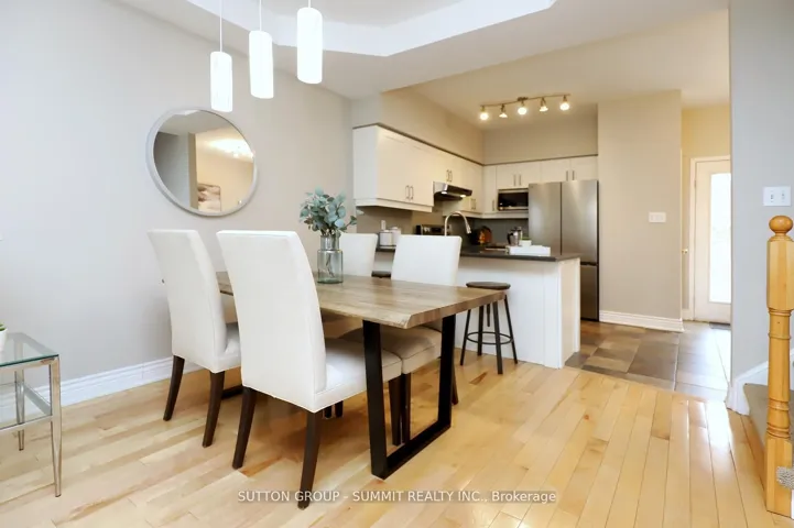 +"PublicRemarks": "Sleek, stylish, and sun-filled, this seriously well-finished freehold townhouse in Toronto's coveted Richview neighbourhood delivers both polish and practicality. This home blends clean contemporary design with warm, character-rich details, including premium 7-inch-wide hand-scraped white oak floors, matching oak stairs, and a reclaimed century-old barn beam above the fireplace mantle that adds warmth and character. The main floor features 9-foot ceilings and an elegant living space with sleek built-in cabinetry, textured feature walls, and smart motorized blinds throughout the home. The kitchen is both functional and refined, complete with quartz counters with a waterfall edge, top-of-the-line appliances including a 6-burner gas stove, and a generous walk-in pantry. The primary bedroom offers a private ensuite. The ground-level garage, finished with epoxy resin floors, is currently set up as the ultimate home gym and offers flexibility beyond parking alone. High ceilings and a storage loft add function inside, while an additional surface parking space provides flexibility for a second vehicle or guests. Outdoor living is equally appealing, with a backyard, two balconies, and a rooftop terrace made for summer evenings. A modern HVAC system and wastewater heat recovery system enhance energy efficiency and future-ready appeal. Set in a family-friendly pocket surrounded by parks and walking trails, just steps from Richview and Silver Creek parks and minutes from the airport and major highways, this home pairs upscale finishes with everyday functionality. The turnkey freehold townhouse you've been looking for, no maintenance fees - simply move in and enjoy."