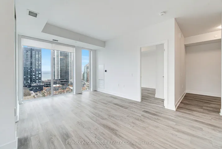 +"PublicRemarks": "Welcome to one of the largest suites in the newly built Martha James building, an exceptional 949 sq ft corner unit. This upgraded 2-bedroom + den, 2-bath residence is filled with natural light & enjoys panoramic views of Lake Ontario along with warm morning sun exposure. Thoughtfully designed, the open-concept layout features 9 ft ceilings, floor-to-ceiling windows, sleek vinyl flooring, motorized roller shades, mirrored closet doors & Rogers Wi Fi included. The modern kitchen is equipped with full-size stainless steel appliances, a built-in microwave, quartz countertops with a full quartz backsplash and upgraded finishes throughout-perfect for both everyday living & entertaining. The kitchen area was designed to allow space for a table & the S/E exposure in this area leads to a sliding glass door W/O to the private balcony. The primary bedroom offers great views & boasts an impressive 3-pce ensuite bathroom as well as double closet area with mirrored doors. The 2nd bedroom is generous in size & offers direct access to the main 4-pce bathroom. The main living area is ideal for entertaining & it is designed to take full advantage of the panoramic views with the floor to ceiling windows. The versatile den offers ideal space for a home office or additional living area. Please note the ensuite laundry area. Enjoy the added value of a premium parking spot & an oversized locker (117 SQ FT with electrical outlet, P4-A)-a rare & highly desirable feature. Ideally located just moments from shopping, dining, waterfront trails, parks, Go & Via transit, QEW, 407 and 403 highways, this stunning corner suite delivers upscale living in Downtown Burlington. Residents enjoy 24/7 concierge service, an elegant lobby lounge, smart parcel system. Triple AAA tenant. Min 1 year prefer long term lease. NON smoker. NO pets. Provide Credit check with OREA rental appl. Internet is included. 2 bed, 2 bath + 1 den suite. Tenant to pay all utilities incl, water, hydro & tenants insurance."