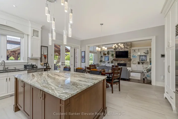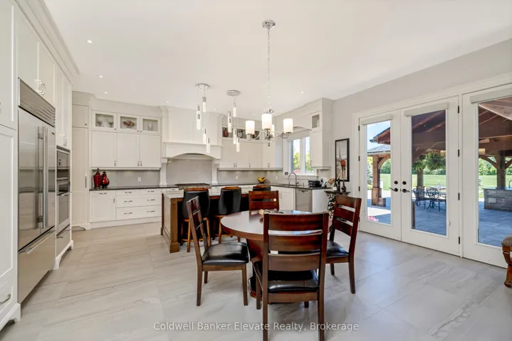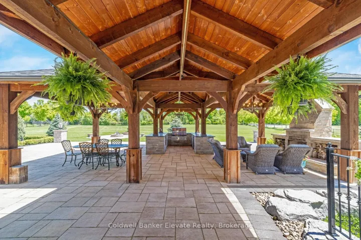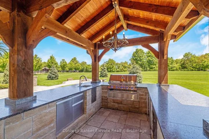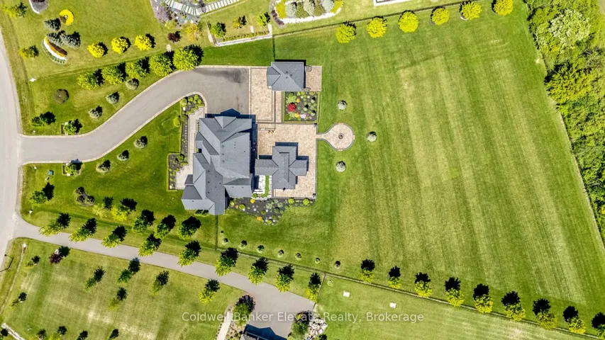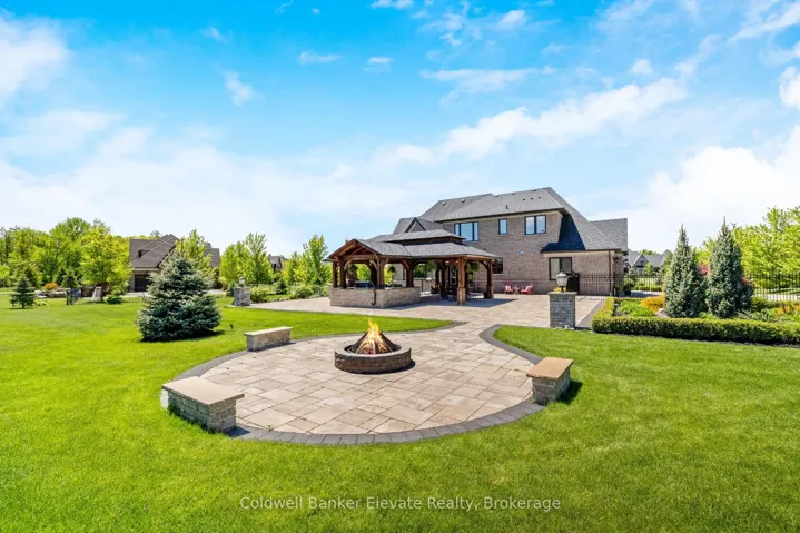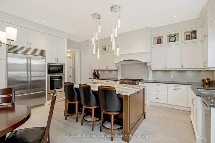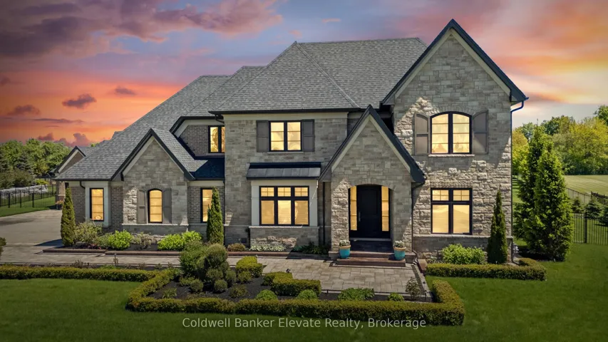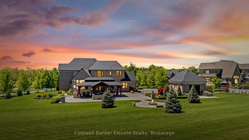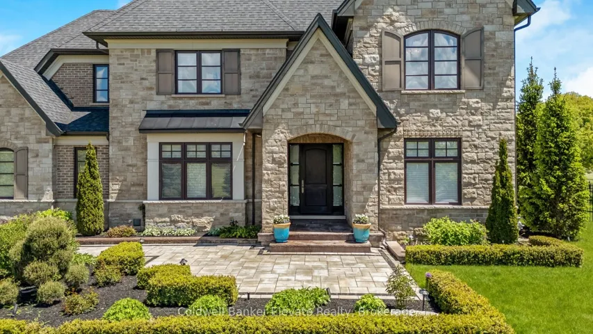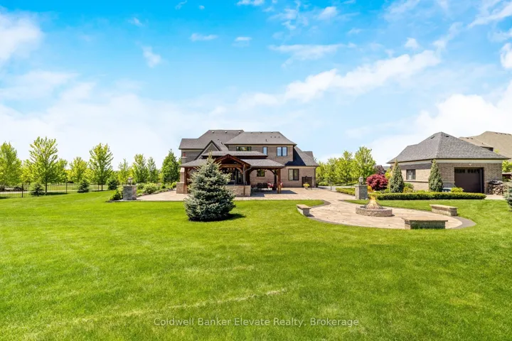 +"PublicRemarks": "Designed by renowned architect David Small, this exceptional Limehouse model sits on 2.2 acres in the prestigious Black Creek Estates neighbourhood, offering manicured grounds and no neighbours behind. A 3-car attached garage plus a detached single provide outstanding space for vehicles, storage, or a workshop, complemented by a long private driveway with parking for multiple vehicles. Inside, 10 ft ceilings on the main level and 9 ft ceilings on the upper and lower levels create an airy, refined feel, enhanced by hardwood flooring, stone countertops, tall baseboards, and custom window coverings throughout. The main level offers a private study and an elegant dining room with a walk-through servery connecting seamlessly to the chef's kitchen. Designed for both function and style, the kitchen features Wolf appliances, Subzero fridge, Miele dishwasher, a large centre island, and custom cabinetry with extensive built-in storage solutions, including pull-outs and organizers. The open-concept layout flows into the breakfast area and great room, where a cathedral ceiling and striking stone gas fireplace create a warm and inviting focal point. Large windows frame serene backyard views and fill the home with natural light. Step outside through double doors to a covered patio with retractable screens and continue to a show-stopping backyard pavilion. Complete with a wood-burning fireplace, dining area, and outdoor kitchen with built-in Napoleon BBQ, beverage fridge, wine cooler, sink, and storage, this space is designed for effortless entertaining. Upstairs, four spacious bedrooms including the primary, each offer walk-in closets and private ensuites, creating comfortable retreats for family and guests. The unfinished basement includes a roughed-in 3-piece bathroom offering endless potential, with space to create additional living areas tailored to your needs, including recreation or in-law possibilities. Just minutes from town and amenities, yet it feels like a world away."