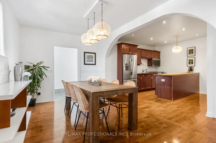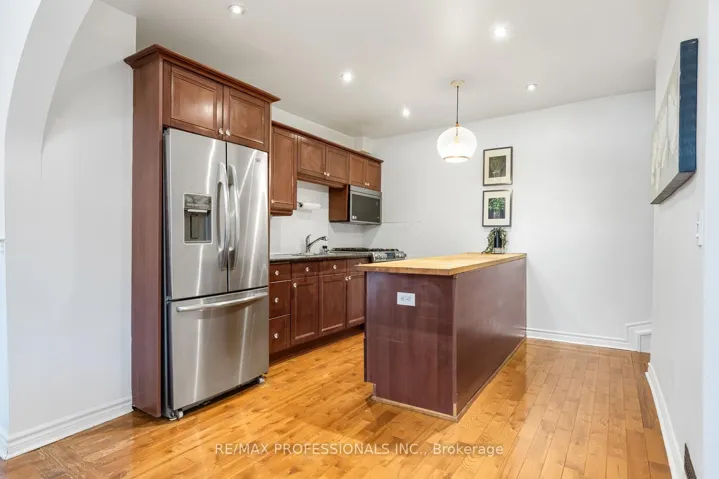 +"PublicRemarks": "Welcome to 1 Gray Avenue, a charming 3-bedroom, 2-bathroom detached home with parking that blends classic character with thoughtful modern upgrades. Step inside to find beautiful hardwood floors, upgraded lighting, and elegant traditional archways that add warmth and timeless appeal throughout the home. Decorative wainscotting enhances the main living spaces, creating are fined yet inviting atmosphere. The bright kitchen is designed for both everyday living and entertaining, featuring stone countertops, stainless steel appliances, a gas stove, and a butcher block island that offers the perfect gathering spot. The front foyer/mudroom features in-floor heating, providing comfort during colder months while adding practical everyday functionality. Upstairs, the bedrooms feature Cape Cod style ceilings. The primary bedroom offers extensive custom built-in storage, maximizing space and organization. The home also includes a finished basement with plenty of storage, providing flexible space for a recreation room, home office, gym, or additional living area. Step outside to a private backyard ready to become an entertainer's dream, complete with a gas hookup ideal for a BBQ or outdoor kitchen setup. The home is also equipped with solar panels on the roof, adding an energy-efficient feature with long-term benefits. Located in a convenient and growing west Toronto neighbourhood, you're within walking distance to grocery stores, parks, and everyday amenities, as well as excellent transit options including the nearby Mount Dennis Station, making commuting across the city simple. A fantastic opportunity to own a move-in ready detached home with parking, character, and modern upgrades in Toronto."