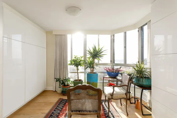 +"PublicRemarks": "Luxury waterfront condominium living awaits at Ennisclare II on the Lake, one of Bronte's most prestigious, award-winning communities, offering breathtaking escarpment, skyline, & lake views in the heart of vibrant Bronte. This exceptional Cambridge model suite spans approximately 1,830 sq. ft. of elegant, single-level living space & features 2 spacious bedrooms, 2 full bathrooms, a den, & a sun-filled solarium. Oversized windows with lake glimpses & escarpment vistas flood the home with natural light by day & showcase sparkling city lights by night. Thoughtfully renovated & beautifully appointed, the suite boasts wide-plank engineered oak hardwood flooring, deep baseboards, custom cabinetry & built-ins, wood feature walls, custom blinds, & solid surface countertops, along with renovated bathrooms & kitchen. The formal dining room overlooks a dramatic sunken living room, ideal for entertaining, & the stylish kitchen offers custom cabinetry, under-cabinet lighting, quartz countertops, stainless steel appliances, & a bright breakfast area with wall-to-wall windows. Relax in the open-concept den & sunken solarium with wrap-around windows & built-in cabinetry, or retreat to the oversized primary bedroom featuring mirrored custom wardrobes & a luxurious 3-piece ensuite with custom cabinetry & an oversized glass shower. A second bedroom, a chic 3-piece bathroom, & a large laundry/utility room complete the suite. Two underground parking spaces (tandem) & one locker are included. Enjoy a truly walkable lakeside lifestyle, just steps to Bronte Harbour, waterfront trails, beaches, & the shops & restaurants of Bronte Village, with outstanding building amenities completing this refined offering."