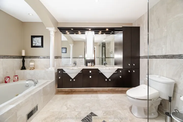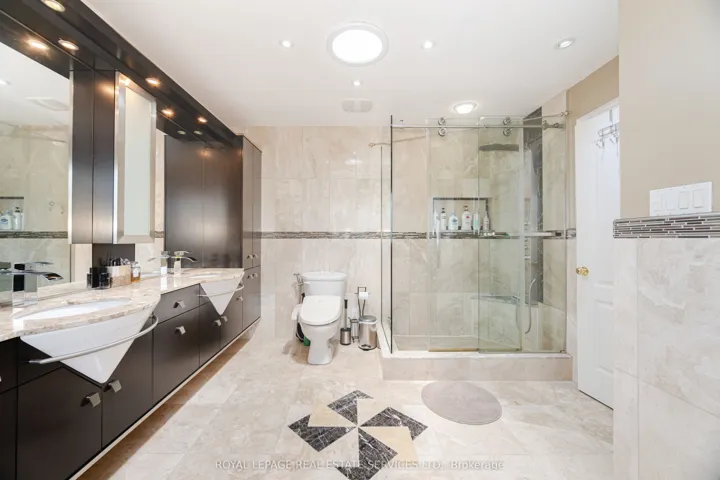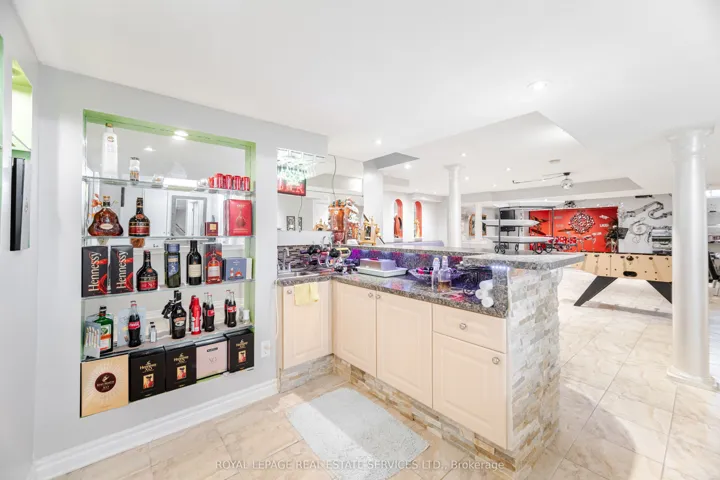 +"PublicRemarks": "Beautifully maintained and fully move-in ready, this executive-style 4+1 bedroom, 5 full bathroom home features a 2-cargarage, a finished basement, and is nestled in one of Mississauga's most sought-after neighborhoods Churchill Meadows. Offering tons of quality living space (plus finished basement), this home features a main floor den/bedroom with ensuite, 2ndfloor loft, 9-ft ceilings on main floor, dark hardwood floors, granite countertops, LED pot lights, and a thoughtfully upgraded interior throughout. The kitchen was refreshed in 2023 and includes stainless steel appliances and a garburator. The finished basement includes a built-in bar area, a full 3-piece bath, and excellent additional living space. Outside, enjoy professionally landscaped front and backyards, stamped concrete driveway/patios/walkways (resealed 2025), and a 2024 gazebo for outdoor relaxation."