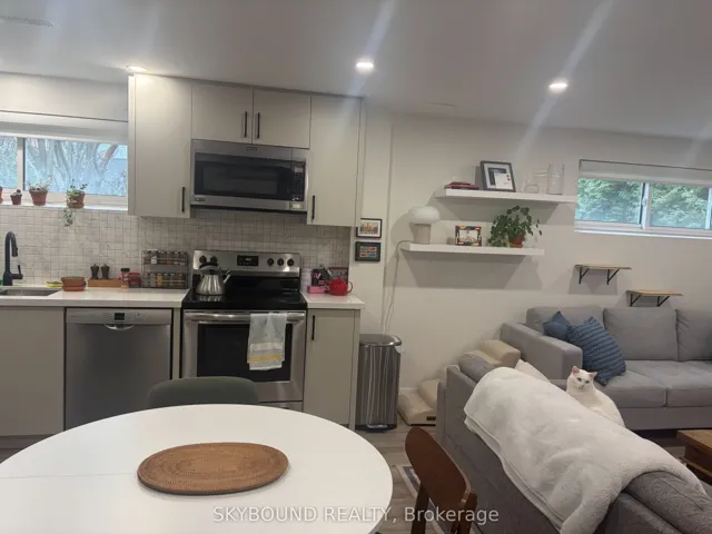 +"PublicRemarks": "Renovated, Bright and spacious Basement 1+ 1 Bdrm with windows above grade. Bedroom + Den/office area, perfect for those who work from home or need extra space.Seperate entrance for complete privacy. This unit has professionally renovated top to bottom; vinyl floors thru out, new modern kitchen with S/S appliances quarts counter top, Led pot lights thru out. Close to Public Transportation and major Hwy's, Go Train. 15 minutes to both downtown Toronto and Toronto& Pearson Int'l Airport. 10 minutes to Subway, 5 minutes from lake Ontario, Marine Parade Drive, Parks, Trendy Restaurants. All Utilities are included and parking spot. Shared laundry with main floor tenant."