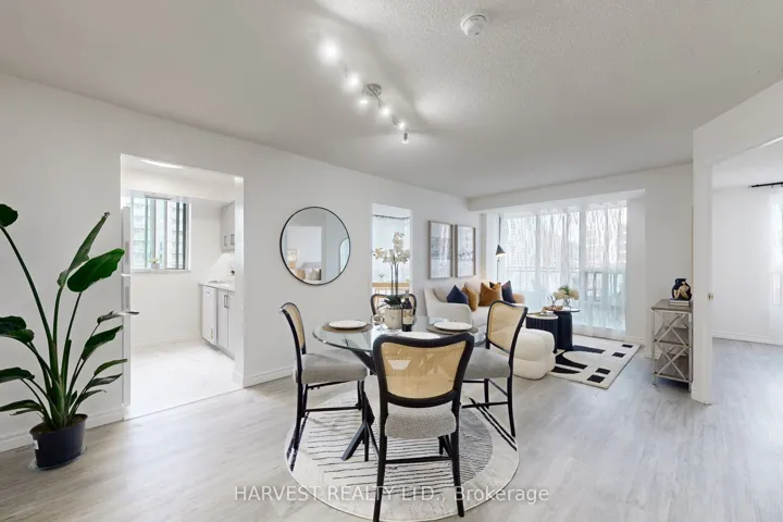 +"PublicRemarks": "Welcome to effortless, elegant living in the heart of Bayview Village. This rare corner-unit (with no unit on top!) offers over 1,200 sq ft of beautifully designed, single-level space, perfect for those looking to downsize without sacrificing comfort or functionality. Step into a bright, open layout featuring 9-ft ceilings, large picture windows, and a warm, inviting living area with a cozy fireplace and combined dining! The well-appointed kitchen includes granite countertops, sleek appliances, and abundant cabinetry, flowing into a private breakfast area with custom built-ins, ideal for everyday living. What truly sets this home apart is the exceptional outdoor space, with two expansive terraces offering endless possibilities, create a private garden retreat, host outdoor dinners, or design multiple seating areas to relax and unwind, all without the upkeep of a house. The spacious primary suite features a walk-in closet, 4-piece ensuite, and its own private balcony, perfect for morning coffee or quiet evenings with a glass of wine. A generous second bedroom and a second full bathroom offers flexibility for guests, a home office, or additional living space. Complete with in-suite laundry, parking, and a locker, this well-managed building offers 24-hour concierge, a fitness centre, indoor pool, and party room. Ideally located just steps to Bayview Village Shopping Centre, parks, dining, and transit, this is refined, low-maintenance living in one of Toronto's most sought-after communities."