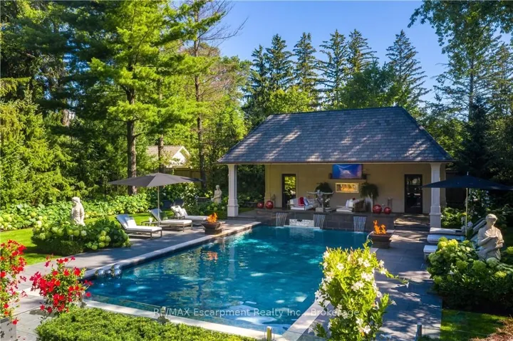 +"PublicRemarks": "15 Chartwell Rd offers a lifestyle of unparalleled luxury. Drive through the gates & discover the grandeur of this palatial estate. South of Lakeshore,1 door from the lake on a HALF ACRE LOT. Painstakingly curated, the contemporary limestone masterpiece you've been waiting for. Solid iron doors lead to a grand foyer revealing the opulent book matched marble floors. Floor to ceiling wdws & French doors flood the house with light. Cascading waterfalls fank the hall.The Dining Room has statement lighting & servery making hosting a breeze. Soaring 18-ft ceilings & a grand gas f/p are focal points of the Great Room,w/captivating views of the resort style yard. Experience culinary excellence in the black lacquer& glass kitchen by NEFF that features top of the line appliances & a B/I coffee machine & butlers pantry. The intimate Living Room with f/p is the ideal retreat. A main floor office w/built-in cabinetry.2 powder & 2 laundry rooms. The backyard oasis has a gunite pool, waterfalls, fire bowls, covered terrace & outdoor kitchen & f/p.The pool house has a change room,3-pc bath & servery. Towering trees surround the home & are positioned to create privacy. A stone driveway,circular fountain & lush gardens create a breathtaking landscape.Floating marble stairs divide the 3 levels of this home or, you can take the elevator. Skylights make the upstairs airy & bright.The principal suite has nearly 13-ft ceilings, an exquisite 6-piece ensuite & 2 W/I closets. A private balcony overlooks the yard.3 add'l bdrms have 10-ft ceilings,private ensuites & W/I closets. The LL caters to all family members. A 5th bdrm/ensuite makes an ideal guest suite.Gym,R/I Golf Simulator,home theatre,Wine Cellar& doggie Spa. The Games & Rec Rooms have a 2nd kitchen & W/O.Heated garage,baths &LL flrs.Automation. Designed by Bill Hicks & features the artistic creativity of the KT Design Group. Located on Oakville's Street of Dreams, this is an iconic living space designed to impress!LUXURY CERTIFIED"