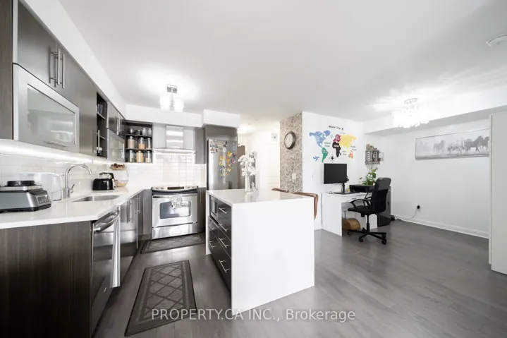 +"PublicRemarks": "This Spacious And Bright 670 + Sq Ft Suite Features A Functional Layout With Beautiful West-Facing Views. The Modern Kitchen Is Complete With A Quartz Waterfall Countertop, Stainless Steel Appliances, And A Versatile Island Perfect For Both Dining And Entertaining- Ideal For Any At-Home Chef. The Large Living Area Comfortably Accommodates Full-Size Furniture And Walks Out To A Private Balcony With Stunning Sunset Views. The Oversized Bedroom Features Sleek, Carpet-Free Flooring And Easily Fits Larger Furniture. The Den Offers Excellent Flexibility, Perfect For A Home Office, Dining Space, Or Additional Storage. Finished With Updated Light Fixtures And Clean, Glossy White Finishes Throughout, This Is A Truly Turnkey 1+Den. Enjoy A Well-Managed Building With Top-Tier Amenities Including An Indoor Pool, Media Room, Gym, Party Room, Concierge, And Visitor Parking. Unbeatable Location - Just Steps To TTC, Parks, And Restaurants, And Minutes To Cafes, Grocery Stores, Sherway Gardens, Golf Courses, IKEA, Costco, And Major Highways (427, Gardiner, 401). Includes 1 Parking Space, In A Prime Location on P1 And 1 Locker. Exceptional Value!"
