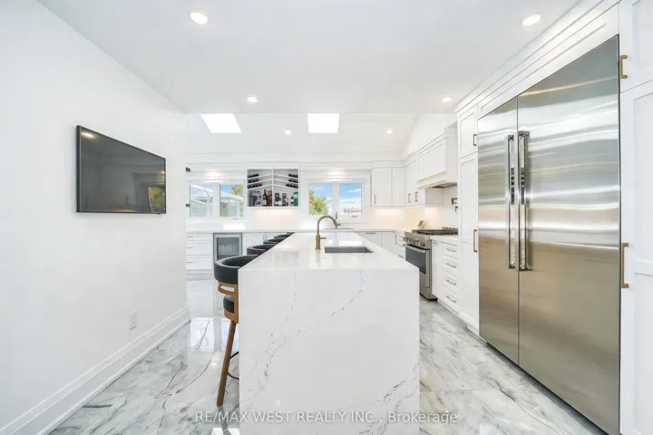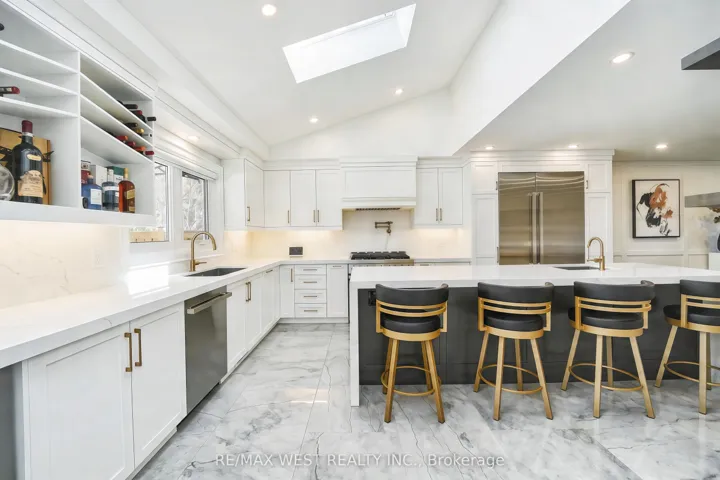 +"PublicRemarks": "Spectacular, custom renovated home in the highly sought after Greens of St. Georges, this breathtaking property showcases premium and exceptional craftsmanship and luxury finishes throughout (see Schedule C for full details). A grand foyer leads to a fully renovated main floor with over 11' ceilings and Velux skylights with automatic blackout shades, filling the space with natural light. The designer kitchen features premium cabinetry, Han Stone (Canadian-made) quartz countertops, Brizo fixtures, pot filler, and top-tier Jenn Air Noir appliances including a 42" built-in fridge, 36" gas range, built-in coffee machine, dishwasher, plus a Whirlpool wine fridge. Spacious main floor family room with marble accent wall and fireplace. A functional mudroom with built-ins and garage access. Smart upgrades include Lutron Caseta lighting, Nest thermostat, upgraded electrical with 200 Amp service, and a high-security front door. Upstairs offers a luxurious primary suite with a custom walk-in closet, additional bedrooms with built-in closet systems, solid wood doors throughout, and recently renovated spa-like bathrooms featuring Schluter heated floors. Separate entrance to the fully finished basement which includes a complete second kitchen and full bathroom, ideal for extended family or entertaining. Outdoors, enjoy a private, professionally landscaped oasis backing onto greenbelt, featuring a custom pavilion by Wolf Lake Timber Works, gourmet outdoor kitchen with built-in 32" Napoleon grill, side burner and fridge, a 14' Hydropool swim spa, artificial turf, irrigation and drainage systems, new fencing, and custom shed. Additional upgrades include a Kohler whole-home generator, surveillance system with Nest cameras and smoke/CO detectors, new A/C (2025), roof (2021), garage door and exterior doors (2023). Simply must be seen!"