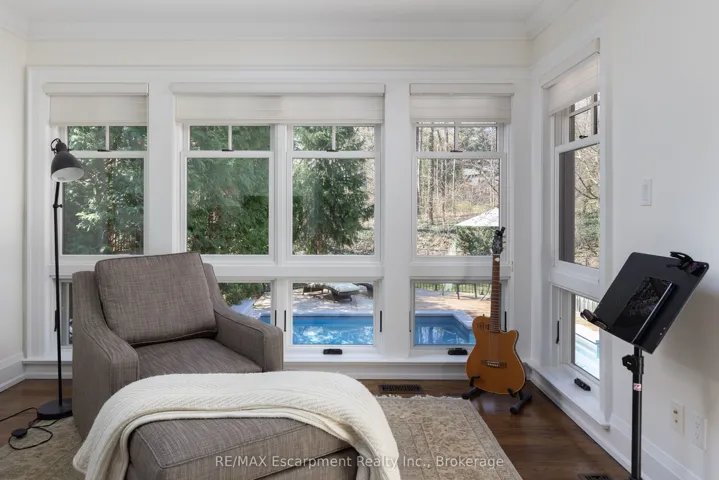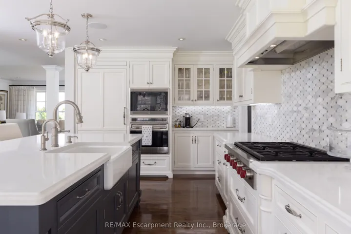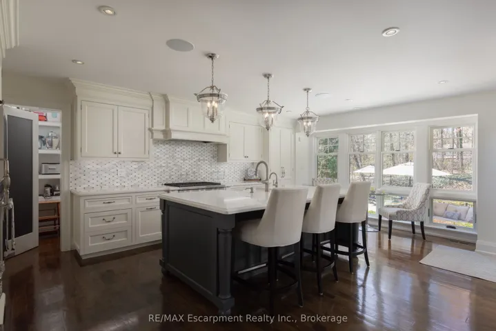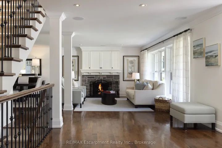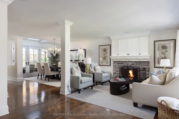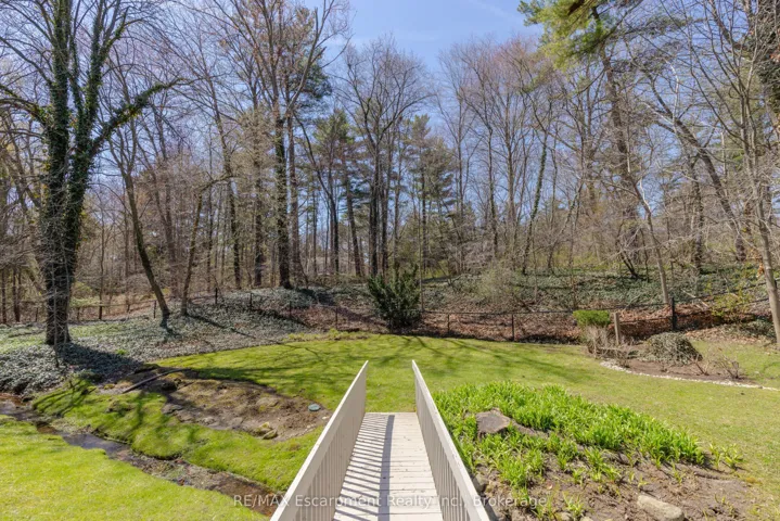 +"PublicRemarks": "Welcome to 444 Drummond Road in prime Southeast Oakville. Set on an exceptional 75 x 185 ft private, park-like lot backing onto serene green space, this beautifully renovated home (2012/2013) offers a rare blend of elegance, functionality, and resort-style living. Inside, a bright open-concept layout seamlessly connects the principal living spaces, ideal for everyday living and entertaining. The living room features a gas fireplace and garden views, while the dining area is enhanced by a skylight. The chef's kitchen is a showpiece with premium Wolf and Sub-Zero appliances, a generous pantry, and picturesque backyard views, with walk-outs from both the kitchen and dining area for effortless indoor-outdoor flow. A standout feature is the main floor principal bedroom suite-a rare and sought-after retreat with a spa-inspired ensuite (skylight), spacious walk-in closet, and cozy sitting area, offering comfort without stairs. A well-designed mudroom and laundry area provide added convenience, with extra storage, overflow fridge, and direct garage access. Upstairs offers two spacious bedrooms, one with a Juliette balcony, a beautifully finished bathroom, and an unfinished area with potential for a fourth bedroom or office. The lower level is ideal for entertaining, featuring a recreation room with gas fireplace, custom wet bar with built-ins, beer tap, freezer, and wine fridge, plus an additional bedroom, full bath, and ample storage. Step outside to your private oasis with a newly built in-ground pool and waterfall, multiple lounging and dining areas, and a tree-lined lot for exceptional privacy. A charming bridge leads to a tucked-away retreat. A truly special home offering luxury, lifestyle, and one of Southeast Oakville's most desirable settings. Please call Alex Irish for inquiries."