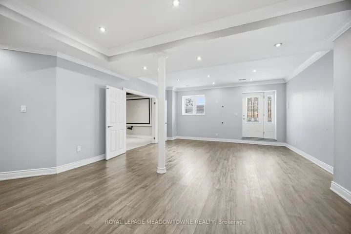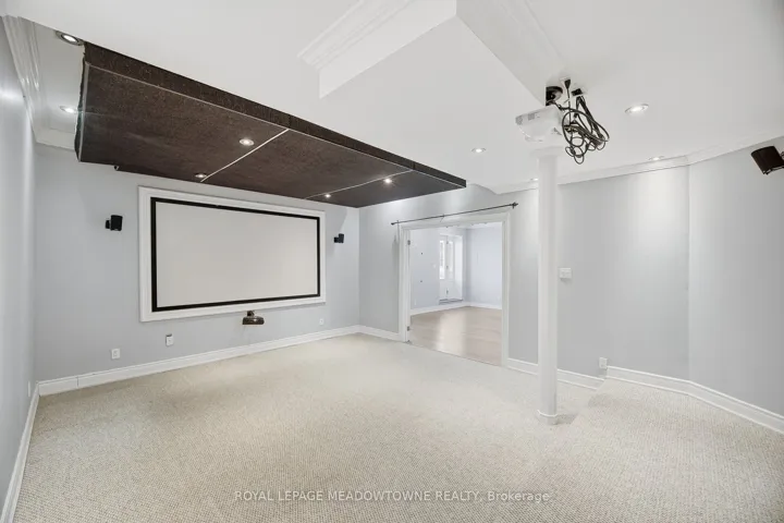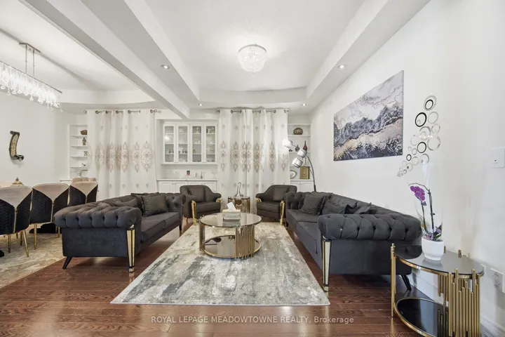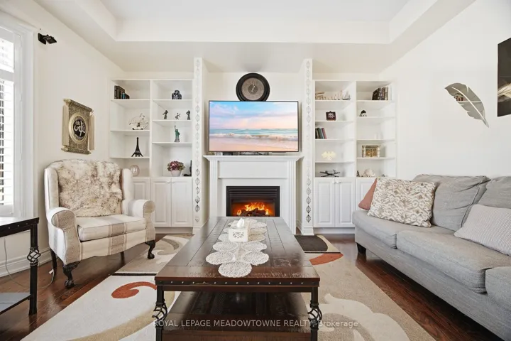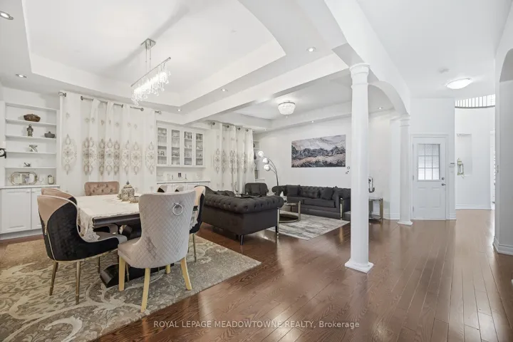 +"PublicRemarks": "Absolutely stunning executive estate home positioned on the most exclusive and finest street in Churchill Meadows, quietly nestled on a prestigious cul-de-sac offering unmatched privacy and distinction. This meticulously maintained residence showcases a rare three-car driveway and two-car garage equipped with an EV charger, soaring ten-foot ceilings on the main level, nine-foot ceilings on the second level, and a professionally finished walk-out basement designed for elevated living. The home features four full bathrooms plus a powder room, smooth ceilings throughout, and convenient upper-level laundry with brand new machines. The chef's kitchen is crafted for luxury entertaining, featuring smart Samsung appliances under warranty, an elegant breakfast area with walk-out to a two-tier deck, and a gas hookup for seamless indoor-outdoor hosting. The grand primary retreat boasts a fireplace, two expansive walk-in closets, and a spa-inspired five-piece ensuite designed for ultimate relaxation. Secondary bedrooms are equally impressive, offering a Jack and Jill five-piece bath and a private ensuite suite complete with walk-in closet and three-piece bathroom. California shutters throughout provide timeless elegance and refined privacy. The lower level unveils a newly built apartment-style living space finished to an exceptional standard, highlighted by a massive home theatre, two executive offices, and direct walk-out access to the landscaped yard - ideal for extended family, guests, or sophisticated entertaining. A rare opportunity to acquire a grand, impeccably appointed luxury residence on the most coveted street in one of Mississauga's most sought-after communities."