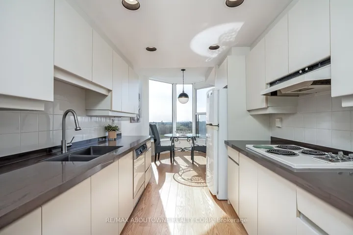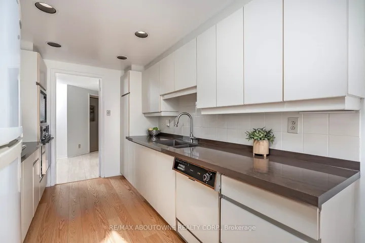 +"PublicRemarks": "Location Location Location! Come home to stunning 7th floor views with this sunny southwest facing 1449 SF corner suite with 2 exclusive underground parking spots! Enjoy the breathtaking panoramic vistas of the escarpment and lake from this unit at the upscale Arboretum in Glen Abbey, where each floor has only 6 exclusive suites. Freshly painted throughout, the open concept living/dining room with den offers plenty of space for entertaining and features elegant red oak engineered hardwood throughout, and sliding glass door to balcony to enjoy the splendid vistas! Large bright kitchen with white cabinetry, and open to breakfast area bathed in natural light - surrounded by ceiling height windows and perfect for morning coffee and casual dining. Generous king-size primary bedroom offers a large window for natural light, walk-in closet and private 5 piece ensuite with double sink vanity counter, soaker tub and walk in shower. The second bedroom also features a large window for natural light, double closet, and convenient access to the 4-piece main bathroom. In suite laundry, 2 underground parking spots and sizeable storage locker is also included. Heat pump 2023. Manicured grounds and gardens and extensive building amenities include indoor pool, hot tub, sauna and change rooms, a party room with full kitchen, fitness area/gym, billiards room, library, hobby games room, tennis court, a car wash bay, outdoor patio with BBQs, guest suites and plenty of visitor parking. Never a dull moment at the Arboretum with it's active social committee & organized events. Walk to the famous Monastery Bakery, minutes to Glen Abbey Recreation centre, steps to area trails and parks. This beautiful and well managed complex is set in a prime location and within easy access to major highways, transit, charming downtown Oakville and just minutes to the new Oakville hospital. Buildings have recently undergone extensive refresh/renewal of common hallways and areas."