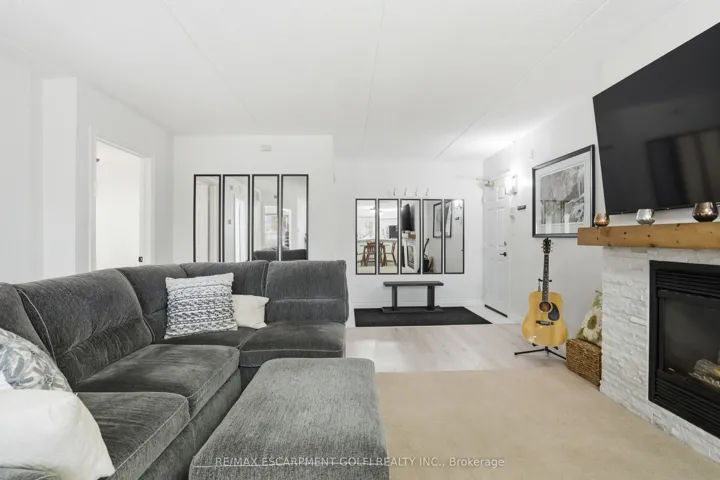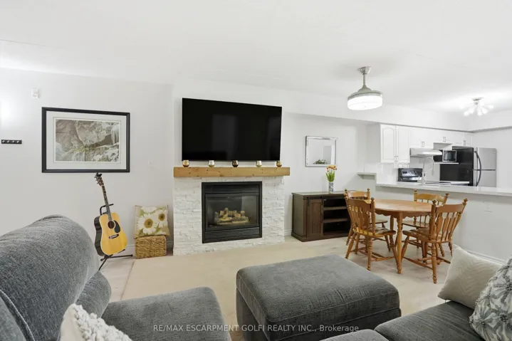 +"PublicRemarks": "Welcome to this beautifully updated second-floor condo in a well-maintained low-rise building, offering the perfect blend of comfort, style, and convenience. This bright and spacious unit features two generously sized bedrooms and a full bathroom, ideal for first-time buyers, downsizers, or investors alike. The open-concept layout seamlessly connects the kitchen, dining, and living areas, creating a functional and inviting space for everyday living and entertaining. The modern kitchen is complete with sleek white cabinetry, stainless steel appliances, quartz countertops, and a classic subway tile backsplash. The living room is highlighted by a stunning feature wall with a cozy gas fireplace and mantle, adding warmth and character to the space. Enjoy the convenience of in-suite laundry, along with one underground parking space and a dedicated locker for additional storage. Stylish new flooring runs throughout the unit, and the bathroom also features a quartz countertop for a clean, contemporary finish. Step out onto your private balcony and take in the peaceful view of mature trees-perfect for relaxing after a long day. Located in a highly desirable area, you're just minutes from the QEW, with shops, restaurants, and everyday amenities all within walking distance. Nature lovers will appreciate the nearby trails, offering the perfect escape for walking and outdoor enjoyment. A fantastic opportunity to own a move-in-ready condo in a prime location!"