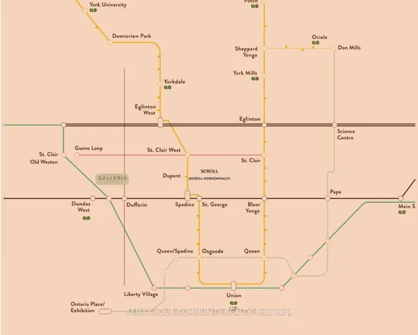 +"PublicRemarks": "Welcome to Galleria III at Galleria on the Park in Toronto! Modern 1-bedroom condo offering approximately 400 sq ft of thoughtfully designed interior living space plus a spacious private balcony, Locker Included!!! Functional, open-concept layout with contemporary finishes throughout. Located in a master-planned community, Galleria III features over 21,000 sq ft of premium amenities including 24-hour concierge, fitness centre, outdoor BBQ areas, and stylish social and co-working spaces. Situated in the vibrant Wallace-Emerson neighbourhood, steps to a new park and community centre with ice rinks, swimming pools, and fitness facilities. Convenient access to public transit, including Dufferin Station, the Bloor subway line, and the UP Express. Ideal for Students, professionals, families seeking modern urban living in a growing community."