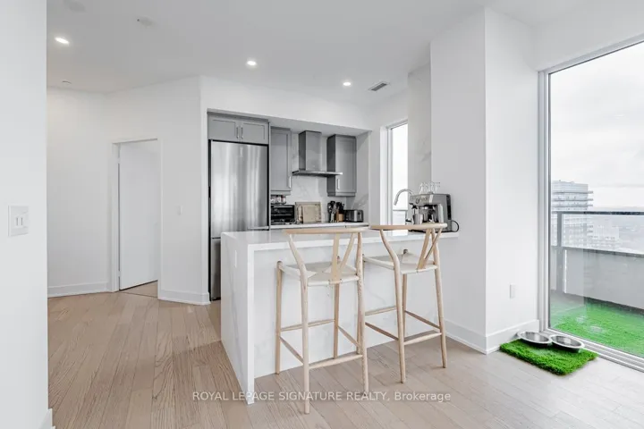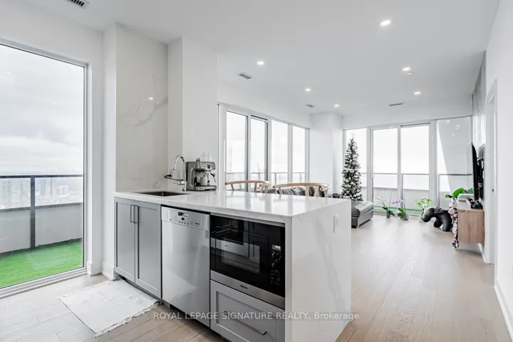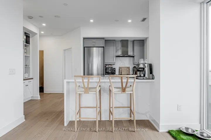 +"PublicRemarks": "Experience Luxury Living In This Rarely Available, Sun Filled Penthouse Featuring 2 Bedrooms + Den, 2 Bathrooms, Parking,And 2 Lockers. Enjoy Soaring Ceilings, Pot Lights Throughout, White Oak Hardwood Floors, And A Custom Solid Wood &Walnut Built-In Unit With A Designer Feature Wall In The Living Room. The Brand New Kitchen Is Equipped With Premium Miele Appliances, While The Upgraded Bathrooms Offer A Spa-Like Feel. Best Of All, Take In Breathtaking, Unobstructed Views Of The City Skyline, Lake, And Marina From The Expansive Wrap-Around Balcony."
