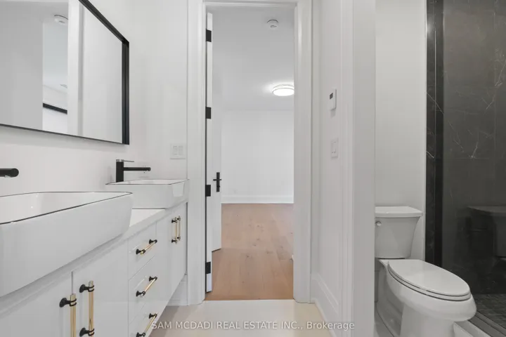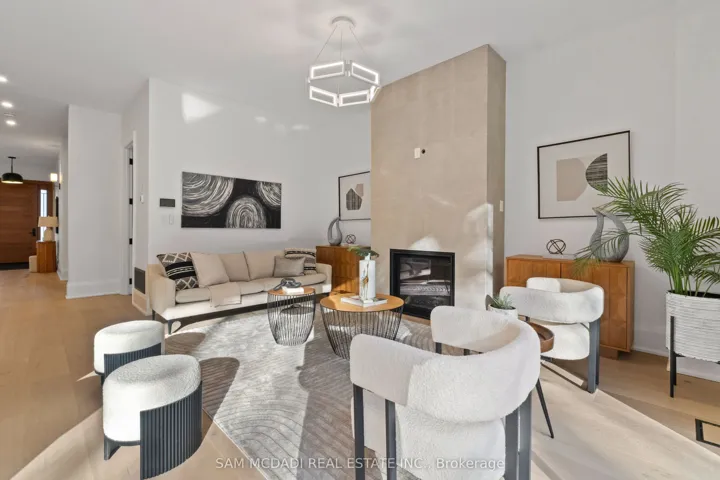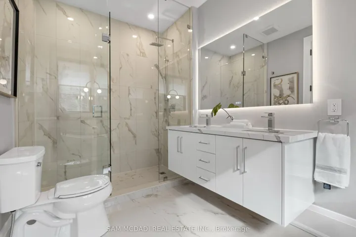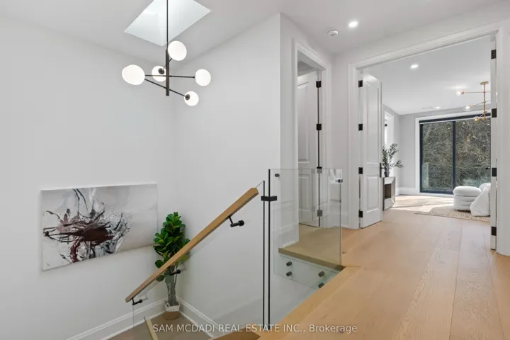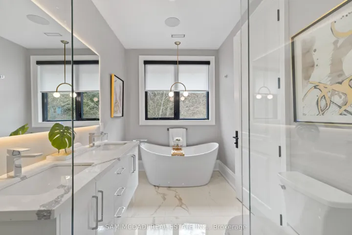 +"PublicRemarks": "Set within one of Toronto's most prestigious west-end enclaves, 78 South Kingsway presents a striking custom residence backing onto the lush surroundings of the Humber River. This 4+1 bedroom, 5-bathroom home spans approximately 3,700 SF and embodies modern sophistication with timeless appeal. The interior reveals itself with intention. Sunlight filters through a dramatic overhead skylight, illuminating wide-plank engineered oak floors and a sculptural oak staircase framed by glass. Every element has been carefully considered, from tailored millwork to integrated technology, including built-in speakers powered by a Sonos system, smart lighting, and automated blinds. Prodigious principal rooms are designed for both comfort and entertaining, featuring expansive windows and a statement chef's kitchen that anchors the main level. The kitchen features a quartz waterfall island at centre stage, complemented by a suite of Thermador appliances, and opens effortlessly onto a raised deck, creating a seamless transition for indoor and outdoor entertaining. The upper level is thoughtfully composed with four generously scaled bedrooms, each with access to ensuite baths with electric heated floors. The primary suite offers a quiet retreat, complete with a private balcony, dual walk-in closets, and a spa-inspired ensuite with a freestanding tub, glass shower, and double vanity. A dedicated laundry room adds practical convenience. Below, the walk-up lower level introduces a flexible extension of the home, featuring a spacious recreation area, wet bar, fifth bedroom, and a well-appointed bath, suited for guests, extended family, or income-generating potential. Outdoors, the landscaped grounds unfold into a private backdrop with no rear neighbours. A custom deck with integrated lighting and audio enhances the setting, offering a peaceful escape framed by nature. Positioned moments from top-rated schools, Bloor West Village, High Park, and the Humber River Recreational Trail."