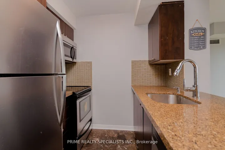 +"PublicRemarks": "4 Hrs Notice required. This is a true gem!!! Enjoy stunning views from your large and private 5 ft x 15 ft balcony. This 2br plus enclosed Den unit offers privacy and elegance with loads of natural light, custom closet organizers, hardwood floors, pot lights, granite counters, custom stone wall, upgraded bathrooms, and a master br with large w/i and 4pc ensuite. Amenities inc. 24hr security, gym, yoga room. 1 underground parking & locker. walking distance to the GO station, sum bus, close to hwy 410/401, shopping centres, schools, restaurants and much more!"