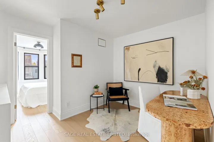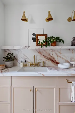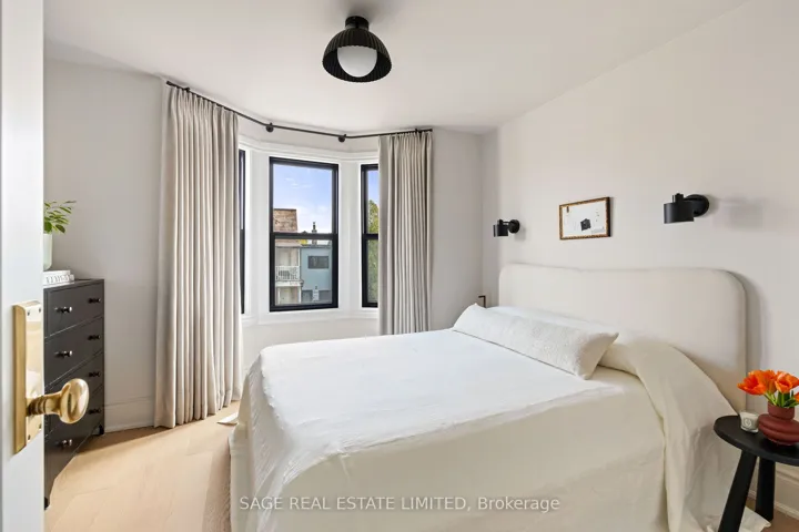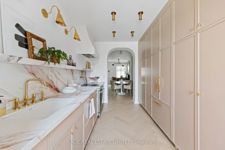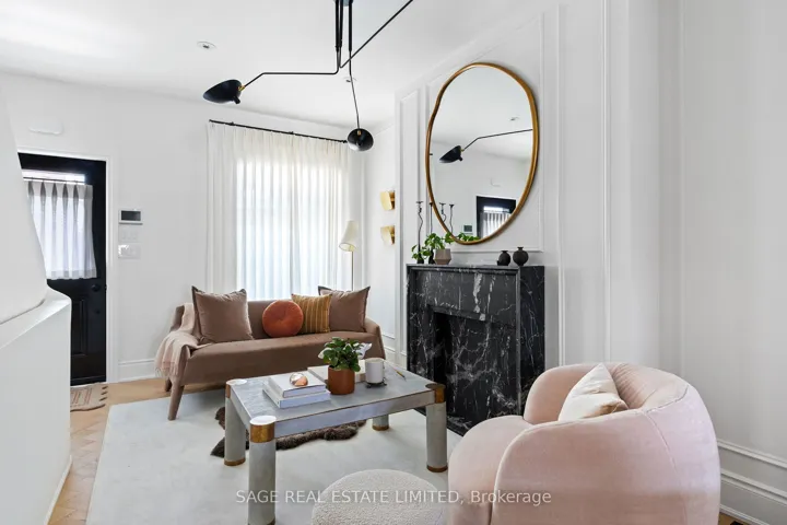 +"PublicRemarks": "This is what happens when someone with real taste starts from scratch. A Victorian home transformed. Professionally redesigned on the main and second floors in 2023, with the kind of finish that sets a new standard. Renovations like this one don't come up often. Every surface, every finish, every detail chosen with deliberate intention. High ceilings, herringbone white oak floors, a sculptural staircase with marble landing step and curved plaster newel post. South-facing throughout with remarkable natural light. The living room anchors around a black marble fireplace and picture-frame wainscoting. Kitchen features dramatically veined quartz countertops & backsplash, solid brass hardware, and direct backyard access through a large mudroom. Two beautifully proportioned bedrooms, a flex space, and a bathroom with terrazzo floors, soaker tub, and hand-painted tile surround. Updated Mechanics: electrical, plumbing, new heat pump, and central air. Private fenced backyard with large laneway garage. (*Virtual Rendering Of Backyard Potential Included*) Steps to the best of Wallace- Emerson, Geary Avenue, Up Express, Transit."