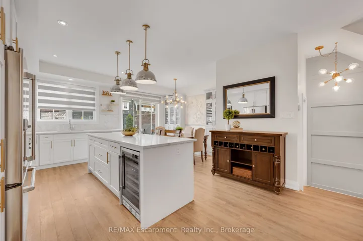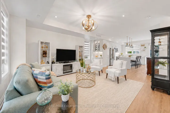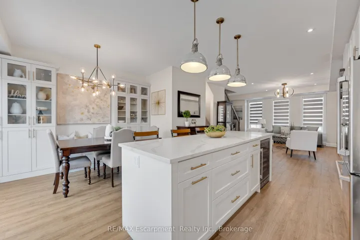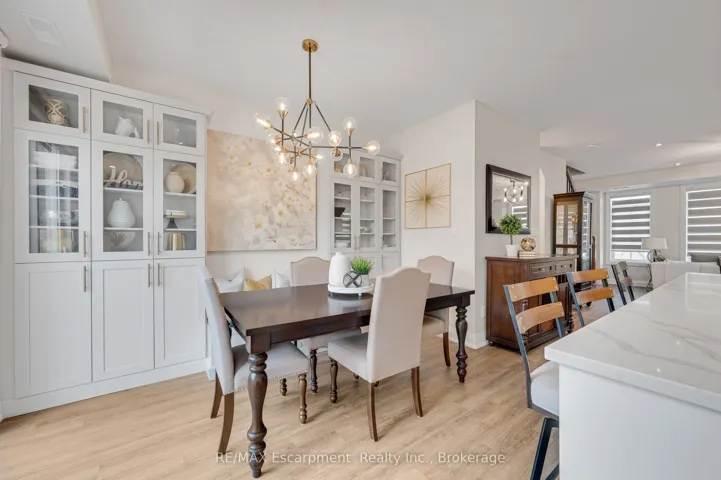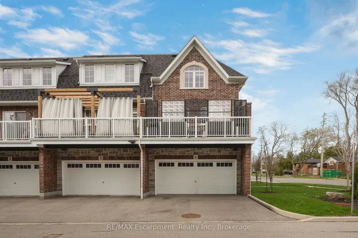 +"PublicRemarks": "Rarely offered end-unit with a traditional layout and an exceptional amount of natural light - one of the most functional and desirable floor plans in the complex. With windows on three sides, this home is bright, open, and thoughtfully finished with custom built-ins throughout - offering both style and everyday practicality. Built by Dawn Victoria Homes and ideally located in the heart of Burlington, you're minutes to shopping, transit, top-rated schools, and downtown. At nearly 1,900 sqft, the layout is both functional and flexible. The main level offers a versatile bonus space - perfect for a family room, home office, or guest area - along with a powder room. Upstairs, the open-concept living space is designed for real life and entertaining, featuring pot lights, custom window coverings, and a built-in bar. The kitchen is crisp and well-executed, with white cabinetry, a herringbone backsplash, GE Cafe stainless steel appliances, and a large 8ft island that anchors the space. Bonus gas line available for a gas stove. It connects seamlessly to the private terrace - ideal for BBQs, morning coffee, or an easy outdoor extension of the home, with two gas lines ready to go. Both bedrooms offer their own ensuites and walk-in closets - an incredibly functional and desirable feature. Laundry is conveniently located on the bedroom level. The basement adds valuable flexibility for storage, a home gym, or future finished space - with a bathroom rough-in already in place. All just steps to the Waterfront Trail, Central Park, the library, and Burlington's vibrant downtown - restaurants, shops, and the lake all within walking distance. Low-maintenance living, done right."