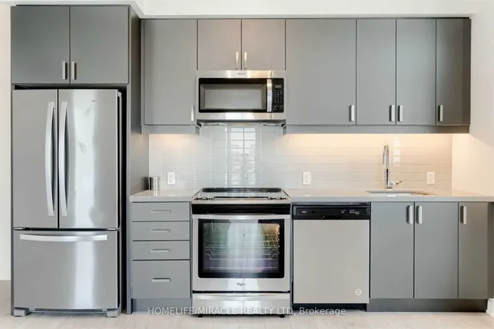 +"Inclusions": "Quartz Kitchen Counters, Backsplash, Under-Cabinet Lighting, Glass Cooktop, Oven, Built-In Microwave/Hood, S/S Fridge, S/S Dishwasher & Stacked Full-Sized Washer/Dryer. 1 Parking & 1 Locker."