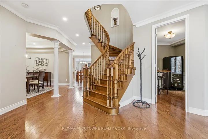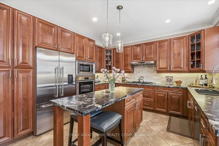 +"PublicRemarks": "Experience the pinnacle of family living in this sophisticated 4+1 bedroom, 5 bathroom detached residence, perfectly situated on a quiet executive crescent in Oakville's prestigious Bronte Creek community, offering over 4,600 sq. ft. of meticulously finished living space.This home has been extensively modernized, step inside to two-story grand reception foyer, upgraded light fixtures (2022) 9-foot ceilings on the main floor, LED lighting and hardwood floor throughout, the sun drenched, sunken living room features a picturesque window overlooking the front garden. A professionally renovated kitchen (2022), showcasing rare leathered granite countertops, a centre island, premium stainless steel appliances including a Fisher & Paykel fridge, built-in oven, gas cooktop, and an under-cabinet CVAC dustpan.The open concept family room features hardwood floors, a gas fireplace, two large windows, and a ceiling fan. Perfect for everyday living and entertaining. High end functionality continues with an upgraded washer and dryer on pedestal bases with garage access. The second level features hardwood flooring throughout (2022), leading to a luxurious primary retreat with "his-and-hers" walk in closets and a renovated (2022) spa inspired 5 piece ensuite featuring a double vanity, deep soaking tub, and a glass enclosed walk-in rain shower. Bedrooms 2 & 3 share a Jack & Jill Full Bath. While bedroom 4 enjoys the 3pc ensuite. A standout feature is the expansive daylight/lookout basement with newly installed flooring (2025) , large high ceiling recreation room, a full bathroom, and an extra room ideal for guests, teenagers, gym or a home office.Exceptional peace of mind is provided by a brand new furnace and A/C (2025), smart thermostat, new garage doors (2022), and a newer roof (2018).Step outside to a large deck overlooking Spire Oak trees and a private lawn, just steps from the provincial park's scenic trails, streams, woodlands, and top tier Oakville schools."