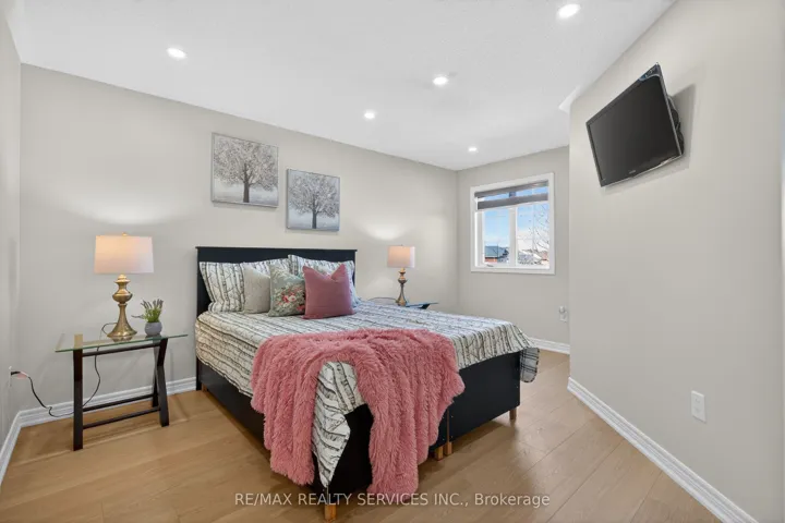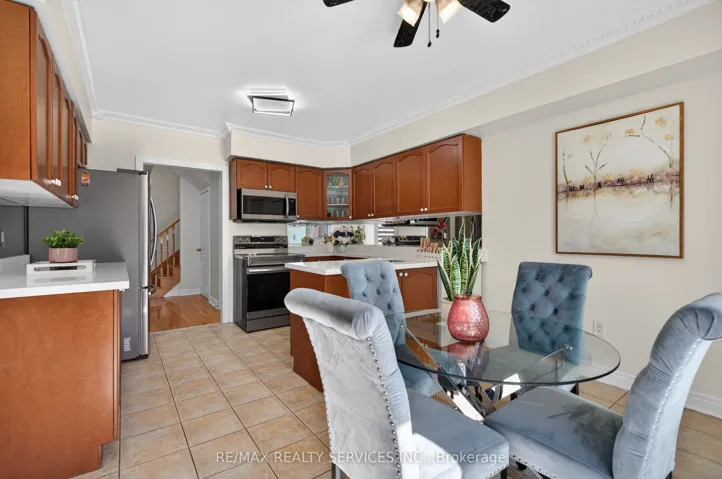 +"PublicRemarks": "Welcome to this Rare to find NORTH EAST FACING fully upgraded home sitting on a premium lot (Pie Shaped Lot) with a huge backyard, perfect for growing families and outdoor enjoyment. This spacious home features 4 bedrooms and 4 washrooms, with a functional layout including separate living, dining and family rooms, offering plenty of space for both everyday living and large family gatherings. Bright open-concept kitchen features brand new quartz counter tops, stainless steel stove(2025), stainless steel fridge along and over the range microwave(2025) and a separate breakfast area ideal for family meals. Many other recent upgrades include new paint, new flooring in 3 bedrooms, brand new vanity in powder room, brand new upgraded primary ensuite, basement washroom and beautifully renovated second washroom. Finished basement features a large media room and 4th bedroom with separate entrance through the garage-perfect for in-laws or teens. Extended driveway fits up to 5 cars, great for multi-car families and guests. Exterior and interior pot lights, exposed concrete stairs and front porch enhance both style and curb appeal. Located in a prime, family-friendly neighborhood close to schools, parks, and all essential amenities. Must See..."