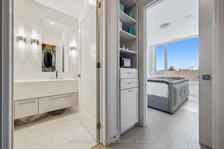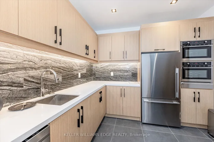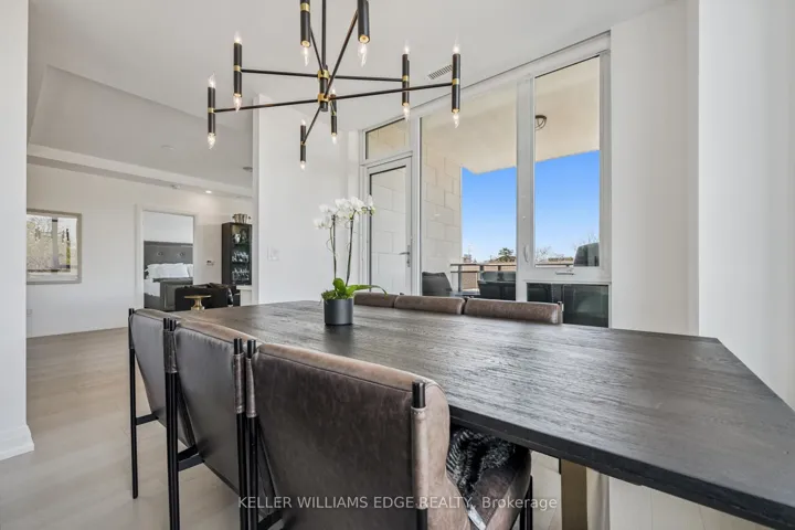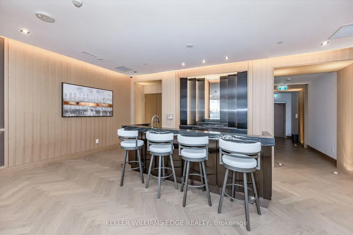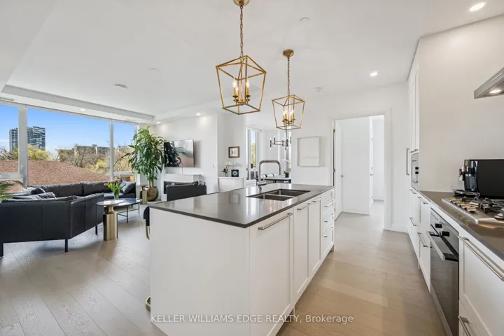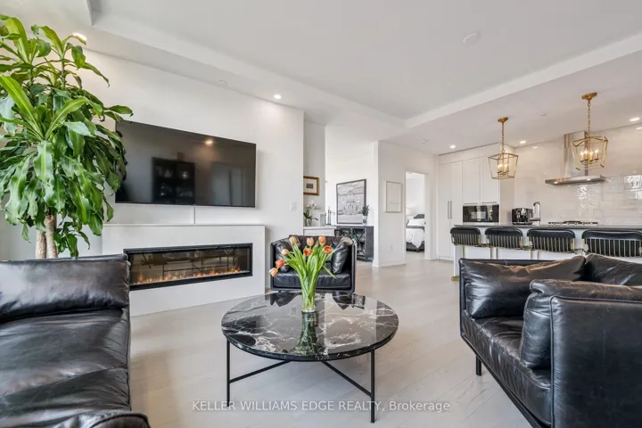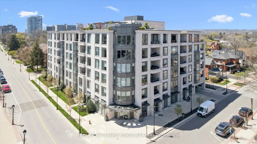 +"PublicRemarks": "Exceptional 2-bed + den, 2-bath corner suite in the boutique Saxony Condo, an exclusive 6-storey residence in the heart of downtown Burlington. Beautifully maintained and recently painted, this suite features 9-foot ceilings and wide plank hardwood flooring throughout. The chef-inspired kitchen offers floor-to-ceiling cabinetry, Caesarstone countertops, a generous island with breakfast bar, and premium Miele appliances including a gas cooktop, panelled refrigerator and dishwasher, along with a full-height pantry with pull-out storage. The open-concept living space is thoughtfully designed for both everyday living and entertaining, centred around a custom linear electric fireplace with quartz surround and integrated cabinetry. The primary suite features a custom walk-in closet and a spa-inspired ensuite with double vanity and glass walk-in shower. All closets, including the foyer walk-in, have been upgraded with custom systems by California Closets. The second bedroom offers semi-ensuite access to the main bath, complete with a glass-enclosed tub/shower. A bright and versatile dining area or den opens to the balcony (approx. 108 sq. ft.), ideal as a home office or additional entertaining space. Designer lighting from Restoration Hardware enhances both the kitchen and dining areas. The private corner terrace offers north-west exposure with gas line for BBQ, water bib, and electrical outlet. Residents enjoy access to premium amenities including a movie theatre, resident's lounge, dining room, fitness room, and rooftop terrace. Ideally located directly across from the Burlington Performing Arts Centre and just steps to Spencer Smith Park, the waterfront, restaurants, and shops, with convenient access to major highways. Includes two side-by-side parking spaces and one storage locker."