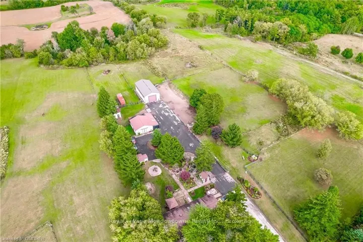 +"PublicRemarks": "Wow - 8 acres of opportunity located at the edge of the quaint village of Carlisle near major roadways, commerce centres and shopping! Enter from Highway 6 down a long, beautifully tree-lined paved driveway to a well maintained 3+1 (4) bedroom raised bungalow set back off the road in a very private setting. The driveway extends beyond the back of the home to a large paved parking area and turnabout that easily accommodates very large and long vehicles. This property boasts an abundance of structures: a metal-clad 32'x64' workshop equipped with a mezzanine and an oversized garage door, a 30'x42' 5-stall metal barn with tac room, a 14'x24' drive shed and a 14'x16' storage unit. There are also a number of fenced pastures on the property for those who want to enjoy hobby farming.The home has a generously-sized eat-in kitchen e/w stainless steel appliances (2024/2015) and distressed maple cabinets (2014). A large living room, 3 generously sized bedrooms and two 3-piece bathrooms complete the main level. The lower level has a large family room e/w a wood burning fireplace, an abundance of storage cabinets, a large 4th bedroom and a laundry/utility room. Relax in the beautiful back yard which has a gazebo to relax under, and a large multilevel deck (2014) surrounded by a multitude of perennial gardens and a water feature creating a peaceful and inviting ambiance.Home improvements also include a new oil furnace (2021) newer roof shingles (2014), boundary/pastures fencing (an approximate investment of $90,000), electrical panel (2019) and an owned water heater (2014). The home is serviced by a drilled well, which is delivering an abundance water."