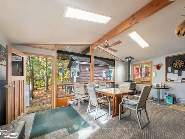 +"PublicRemarks": "Autumn Escape Awaits - Your Private Waterfront Sanctuary on Horseshoe Lake - Imagine crisp mornings wrapped in a wool blanket on your private dock, steaming coffee in hand, as golden leaves drift gently across glassy waters. This is the magic of 399 Horseshoe Lake - a water-access-only cottage retreat that transforms the changing seasons into an unforgettable experience. Accessible only by boat or snowmobile, this exclusive lakefront property offers the ultimate escape from the everyday hustle. Nestled within a serene mixed forest, the cottage exudes warmth and character, with thoughtful landscaping that celebrates the natural beauty of cottage country. The inviting residence features generous bedroom and bathroom accommodations, complemented by a full basement offering both practical storage and the flexibility for guest quarters.The property boasts multiple outbuildings and a charming Bunkie - perfect for welcoming friends and family to share in the cozy season ahead. Whether you're gathering around an outdoor fire pit or retreating indoors for board games and hot cocoa, there's ample space for memorable moments.The waterfront is a showstopper. A magnificent steel-framed boathouse anchors the shoreline, its upper deck an ideal perch for watching autumn's spectacular color show paint the surrounding landscape. The pristine sandy beach invites you to wade into refreshing waters, while a covered dock slip keeps your watercraft secure through all seasons. Additional waterfront storage ensures all your lake toys and equipment are within easy reach.This is more than a cottage - it's your fall haven, your winter wonderland, your year-round lakeside dream."