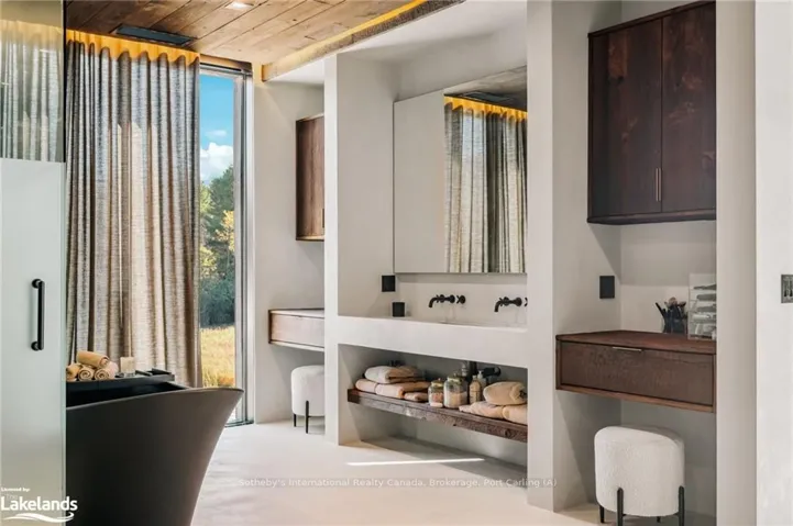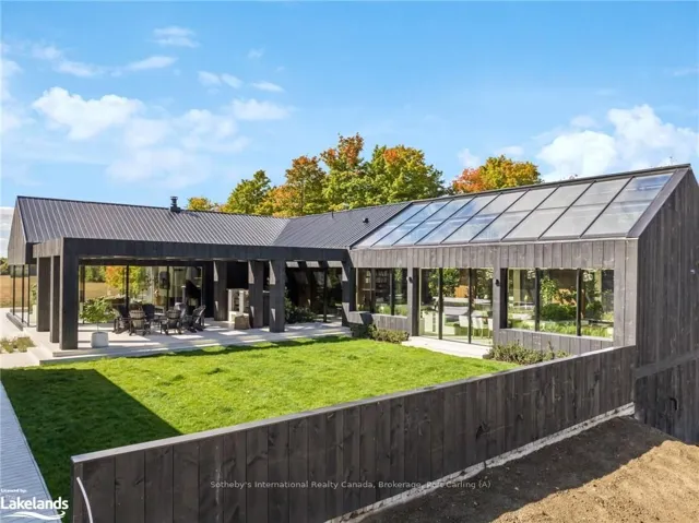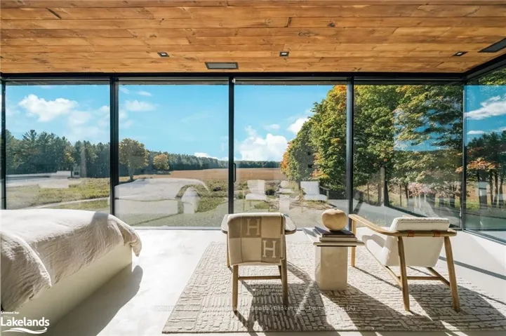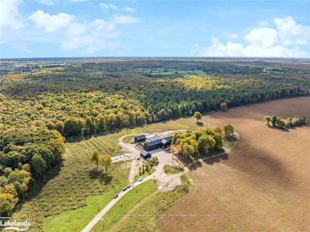 +"PublicRemarks": "Welcome to Pearson's Pastures, a 99-acre estate surrounded by managed forests & open fields just 10 mins from Collingwood & 5 mins from Osler Bluff Ski Club.Striking exterior contrasts with natural landscape, while floor-to-ceiling windows flood home with light & offer breathtaking views. Designed by an expert in energy-efficient living, this sanctuary blends sustainability with elegance. Italian-imported micro-cement floors & Shou Sugi Ban wood accents throughout. The 10,590 sq. ft. main residence is divided into three wings. In theeast wing, culinary excellence awaits with dual kitchensone for entertaining & the chefs prep kitchen. A lofted indoor garden above eating area with two banquettes creates an exotic, tropical ambiance. Dining room for wine collectors. Central wing living space, The Cube, offers 360-degree views, with a cozy fireplace & a reading bench for quiet moments. The west wing, private quarters offer serene retreats. Three king-sized bedrooms, each with Juliet balconies & ensuite baths, provide personal havens. The primary suite, with a 270-degree view, features a luxurious ensuite with a soaking tub, walk-in shower, & custom-designed furniture. The lower level offers a world of entertainment & relaxation, featuring a games room, home theatre, office & a private gym. For guests, 4 additional bedrooms, each with their own ensuite, provides ample space & privacy, making it ideal for extended stays. Outside, the luxuriously designed outdoor space invites you to indulge in the sun-soaked, pool & hot tub. Adjacent courtyard, perfect for hosting gatherings, features a high-end outdoor kitchen, creating the ultimate setting for al fresco dining & entertaining under the stars. 1 km of private trails, & 2 ponds enhance the outdoor experience. Every detail of this estate offers unparalleled sustainability, luxury & a deep connection to nature."