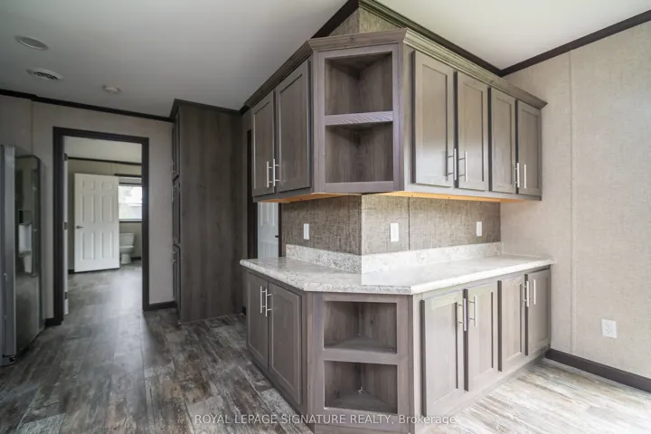 +"PublicRemarks": "Discover comfortable, affordable living in this spacious bungalow-style mobile home in Country Village Mobile Home Park, backing onto an open field with peaceful views and no rear neighbours. Enjoy a private, maturely landscaped yard, new exterior lighting, patio stone pads for outdoor living, and a welcoming enclosed front porch. Larger than it appears, the home features an inviting foyer, open-concept kitchen and living area, and a layout ideal for retirees or young families.The home offers 2 bedrooms plus addition space, 2 bathrooms including a 2-pc ensuite, walk-in closets, and blackout curtains in bedrooms. The fully renovated kitchen includes new countertops, Blanco sink, soft-close cabinetry, in-cabinet garbage/recycling, stainless steel appliances, and gas stove. Added heat in the front room ensures year-round comfort. Main bath features new backsplash and toilet, and the laundry room has updated sink and cabinetry with soft-close drawers.Mechanical includes two furnaces (one dedicated to the heated single-car garage), owned hot water heater, under-sink hot water heater in kitchen, water softener, attic and plumbing venting, and bathroom exhaust fan. Low monthly utilities average approx. $68 gas and $75 hydro.Exterior improvements include heated attached garage with bonus workshop/storage area, large rear storage structure, privacy fencing, landscaped cedars and spruce, new front door, ramp access, replaced windows and a double-wide concrete driveway with ample parking.Move-in ready with room to personalize, just minutes to Hanover and a short drive to Walkerton, offering affordability, comfort, and peaceful country-style living.Lease fees: $408/month (water included) + $25 water testing + $40 taxes = $473/month total payable to park."
