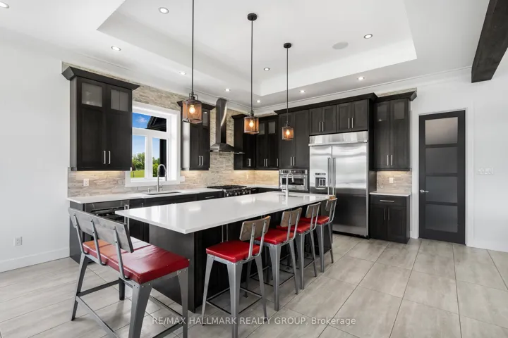 +"PublicRemarks": "Welcome to 3795 Concession 1 Road; Built in 2017, this immaculate 5 bedroom, 3 bathroom custom WATERFRONT bungalow with radiant heated triple car garage & walkout basement is located on 1.35 of an acre of lifestyle. OVER 199ft of water frontage!!! The main floor features radiant flooring throughout; an open concept grand entrance & family room with 19ft cathedral ceilings; an open concept gourmet kitchen & dining room with plenty of windows offering a breath taking view of the Ottawa river with large patio doors leading to over 610 sqft of a covered stamp concrete balcony with glass railing; Custom gourmet kitchen with plenty of cabinets, high end appliances and 10ft quartz island/breakfast bar. Oversize primary bedroom has an open concept custom 5 piece bathroom separated by a gas fireplace; huge formal 10x7 walking closet; huge patio doors leading to the upper level stamp concrete balcony where an hot tub connections & gas BBQ hookup are already in place. Fully finished walkout basement featuring radiant flooring throughout, a huge recreational room, 4 good size bedroom & a modern 4 pce bathroom. Backyard featuring a glass railing fenced-in area with a 24x12 heated in-ground pool with automatic pool cover; outdoor kitchen with bar sink, industrial cook plate with grill, ice machine & toilet. Pool area surrounded with poured concrete throughout. Other features include: Top quality & High End Seamless Metal roof; approx. 200ft of concrete blocks retaining wall; Asphalt water descent with concrete boat ramp; Front & Backyard sprinkler system; Permanent outdoor lighting->Gemstone lights; Extensive Landscaping; Permanently installed 11ft x 54ft concrete floating dock with electricity & water; Main double car garage with main floor access; upper level access *potential in law suite & lower level garage/ basement access. ICF foundation. BOOK YOUR PRIVATE SHOWING TODAY"