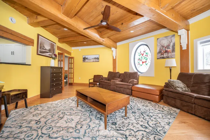 +"PublicRemarks": "STUNNING one of a kind custom built home on 2.36 acres with ~300 feet of private waterfront shoreline. This beautiful property is absolutely perfect for large or multigenerational families offering more than 4000sqft of spacious sun filled rooms. BONUS: As a result of Re Zoning -This amazing property can also be operated as a Bed & Breakfast or Group Home. This magnificent move in ready home has undergone EXTENSIVE renovations and upgrades over the past 3 years. Work performed by qualified contractors with required permits. The home is setback from the road offering loads of privacy. It features a spring fed pond to the east, a large level lot to the west and forested hillsides to the north. The moment you walk through the new front door into the grand foyer you can immediately appreciate the impressive post and beam construction of this home. An abundance of large windows throughout the house allows for amazing views of the river, pond and gardens with custom zebra blinds installed on 29 windows. The entire home has been painted inside and out. The LR has new hardwood flooring, new ceiling fans and pot lights. The kitchen area has been completely upgraded with a new window, drop ceiling, lighting, flooring, cabinetry, sink, quartz counter tops and also boasts high end appliances. Gorgeous stone fireplace has been converted to gas. Chimney was repaired and serviced. Wood wainscoting installed on lower staircase and on firepit half walls. All wall to wall carpets on second floor have been removed and replaced with high quality LVF. New pot lights and lighting installed throughout. The second floor catwalk has been rebuilt and new railing installed to code.15 new doors installed throughout. Washrooms have been upgraded with new vanities(x5), Led mirrors(x2), toilets and new flooring on 2nd floor. Attachments include a comprehensive list of upgrades to the property including the auxiliary building. A rare opportunity to own a one of a kind waterfront property."