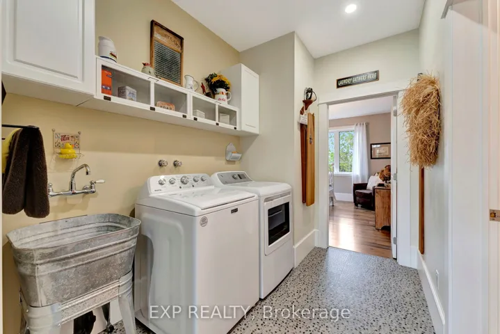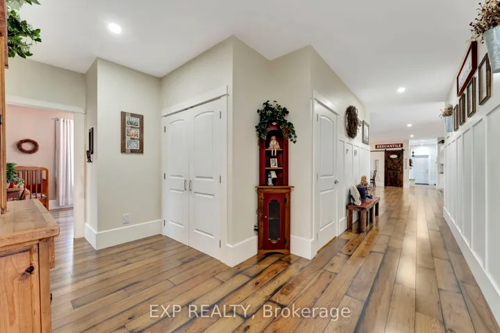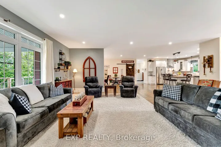 +"PublicRemarks": "Welcome to 3034 Station Road, Fordwich where luxurious country living meets thoughtful design and functionality on nearly 3.4 acres of beautifully landscaped land. This custom-built bungalow boasts over 3,000 sq. ft. above grade with accessibility in mind, offering wide hallways, doors, and a main-floor layout perfect for families or retirees alike. Inside, you'll find 4 bedrooms, 4 bathrooms, a gourmet kitchen with high-end appliances, and a sprawling dining area ideal for entertaining. The finished basement includes a massive rec room, extra bedroom, ample storage, and even a cold cellar. The heated attached triple garage and oversized workshop with separate heat, power, and water are a dream for hobbyists or entrepreneurs. Modern comforts include a high-efficiency propane furnace, central air, water treatment systems, partial generator, and smart layout with main-floor laundry and mudroom. Enjoy tranquil pond views, peaceful walking trails, and nature right outside your door, all while being minutes from the heart of Fordwich and nearby towns like Wingham and Listowel for shopping, schools, and healthcare. Whether you're raising a family, downsizing with style, or need space to grow your business from home, this stunning property offers unmatched versatility, privacy, and quality craftsmanship. Book your private showing today and discover everything this one-of-a-kind home has to offer!"