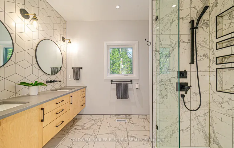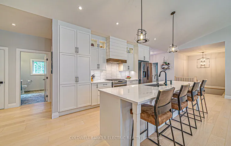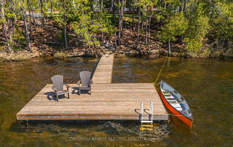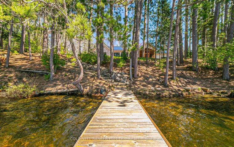 +"PublicRemarks": "Envision 290 feet of Private, pristine WEST facing waterfront on Bow Lake, offering incredible deep clean swimming less than 60' from your dream home! 3800 finished sq ft of luxury tucked into a mature 1.5 acre pine grove. This modern, meticulously planned, 5 bed, 3 bath custom built home/cottage, features 3 main floor bedrooms and 2 main floor bathrooms. The Primary Suite has vaulted ceilings and walkout to the deck, 3-piece ensuite with double custom vanity, large rain shower and heated floor. Fully finished basement includes 2 additional bedrooms plus a 4-piece bath, large rec room, oversized laundry room and tons of storage space. Quartz countertops in kitchen and main floor baths, Ash engineered hardwood throughout the main floor and basement, tile in bathrooms, foyer/mudroom. Still looking for more space? Attached 2-car heated garage with direct entry to the foyer. Power outage? No problem, 11k W automatic generator wired into the home. Enjoy the sounds of nature from your screened-in porch, then venture outside onto your composite deck and bask in the late afternoon sun. Find your Zen at the end of the day as the Sun sends sparkles across the water for a priceless SUNSET! Why not dip your toes in Bow Lake from the edge of your dock while loons, ducks, otters and turtles swim by. Bow Lake has no public access point, meaning you share this beautiful water with only a handful of neighbours! Enjoy easy outdoor living with raised garden beds, mature asparagus patch, Kids' playground and sandbox. If you have more motorized toys than the garage can handle, move them out to the detached drive shed. Care to wet a line? Excellent bass, pike and perch fishing! Centrally located, 10 min north to the full service town of Bancroft, where you'll find shopping, restaurants, rec centre, parks, Schools, and a Hospital; travel south 25 min to the town of Apsley equipped with state of the art hockey arena, gym, and rec hall, putting convenient rural living at your fingertips."